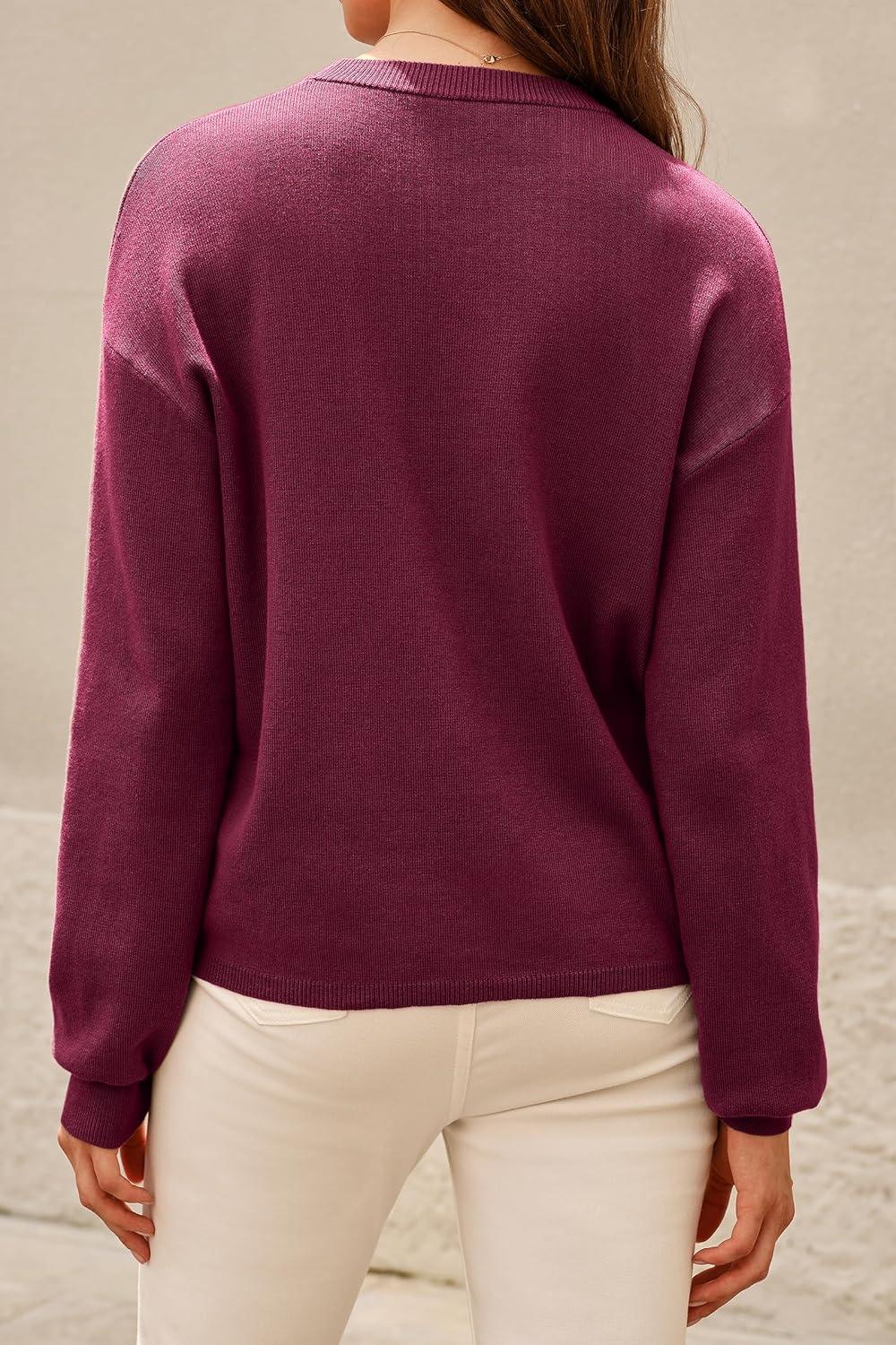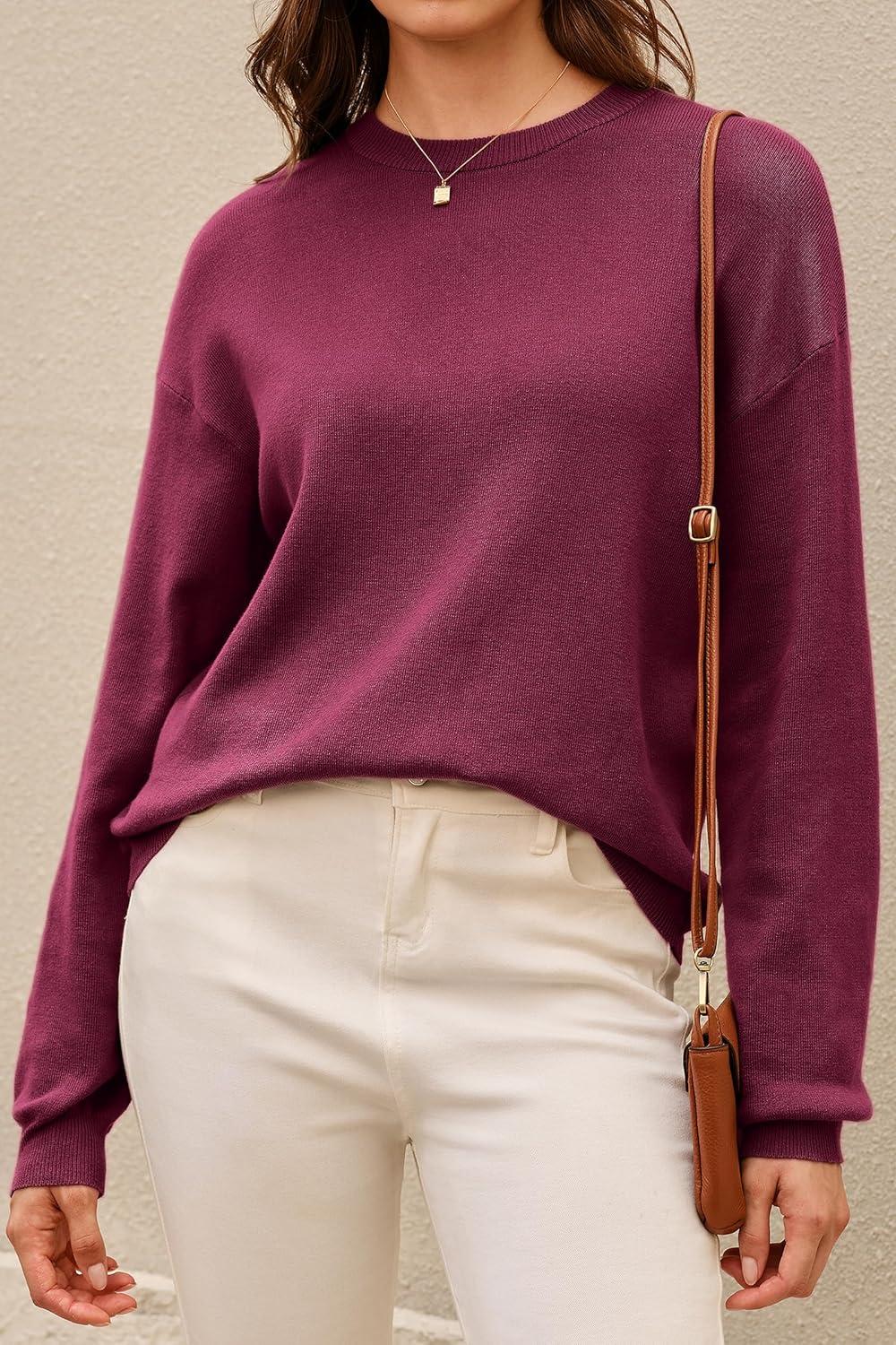 Arach&Cloz Women’s 100% Cotton Crew Neck Fall Casual Relaxed Fit Sweater Tops 2025(Dark Red)