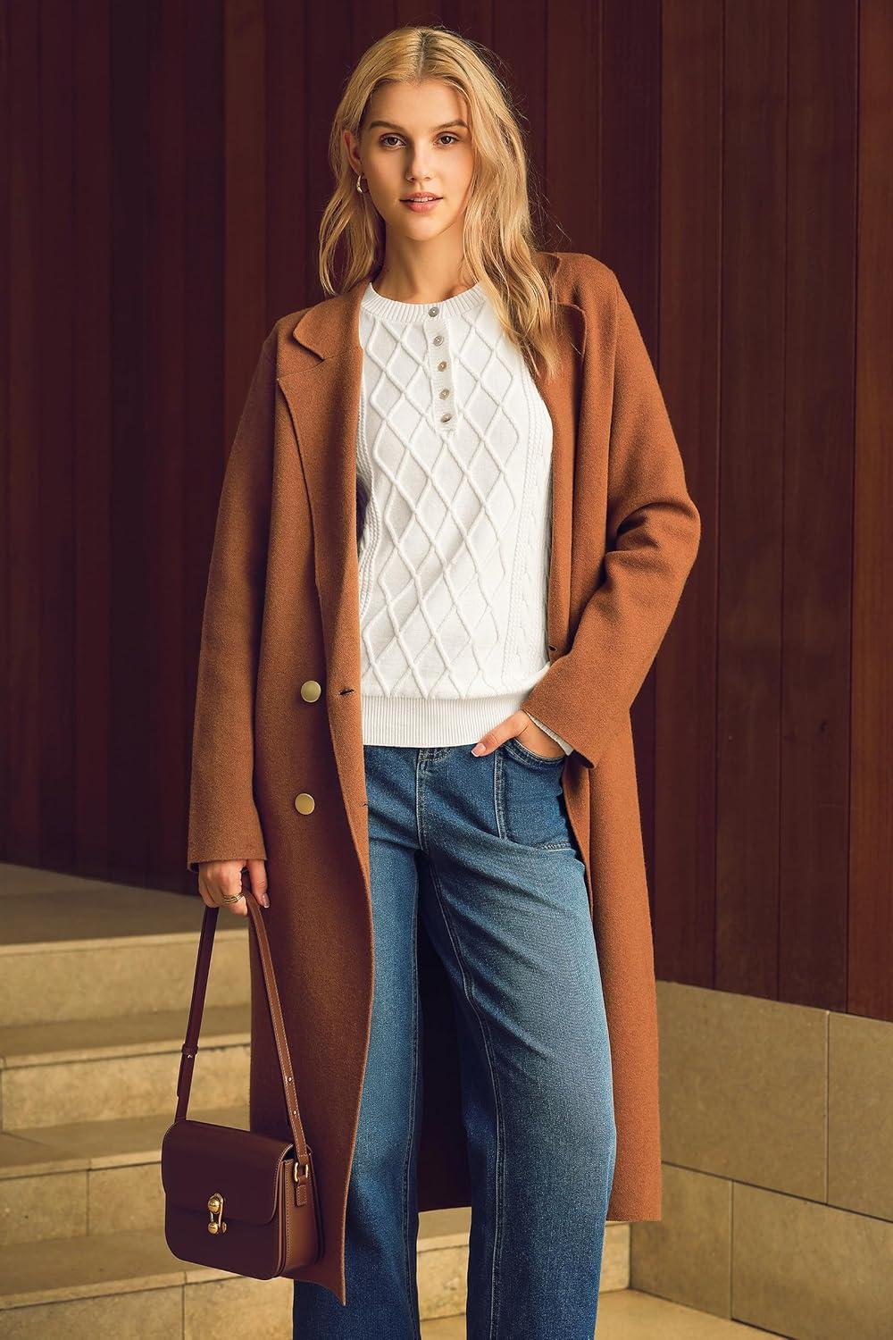 Arach&Cloz Womens Comfy Cotton Blend Cable Knit Casual Sweaters 2025(White)
