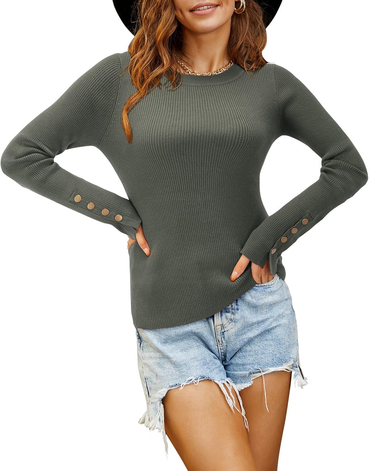 Arach&Cloz Women's Long Sleeve Crew Neck Knit Sweater Tops Button Solid Pullover Classy high quality fabric, this lightweight sweater tops are fashionable and delicate, which make you more exquisite and impressive. Type: round neck sweaters for women, solid pullover for women, long sleeve sweater tops for women. Design Highlight: The button design and crew neck create the perfect vision of your body! Similar Style: This lightweight sweaters could easily wear with your jeans,leggings,pants,for a more casual look! More Choice: True size, stretchy material, various colors and sizes for choosing. Please read the size chart for reference before you choose the size. Warm Tips: 1. Please do keep in mind that refer to the size chart or consult customers service before buying. The size may have 0.4''-0.8''differences due to manual measurements, your understanding will be much appreciated. 2. Color disclaimer: Due to monitor settings and monitor pixel definition, we cannot guarantee the color that you see will be exact from the actual color of the product. About Arach&Cloz Brand: Arach&Cloz grows from a small seller who manufactures women's apparel on Amazon, we continuously win favor with many young people through providing affordable, skin-friendly and modern American style everyday clothes. We believe good clothes boost your confidence and have more fun with fashion. Creating styles of women's essentials wardrobe that most people love and encouraging every women to embraces the simple life are what we love to do.We believe clothes are not just for daily needs, but also show the charm and elegance of each women in unique way.