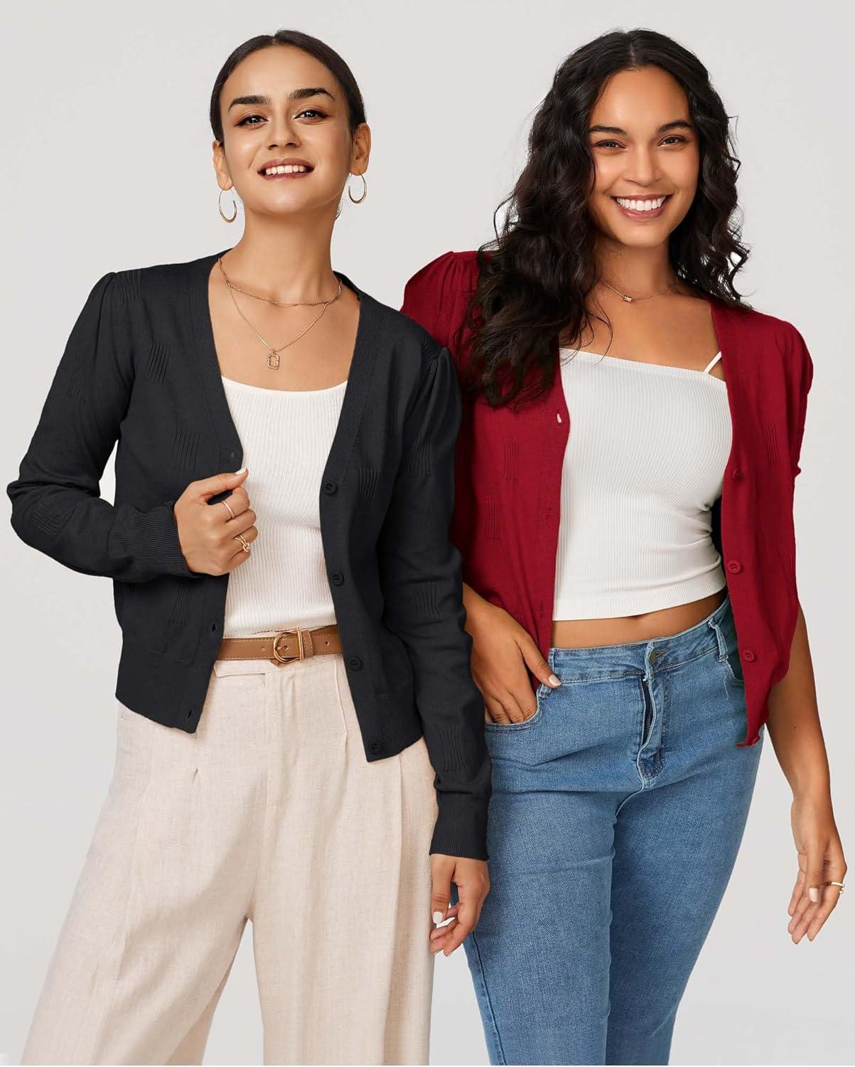 Arach&Cloz Women’s Soft Cropped Cardigan Casual Lightweight Shrug Sweater Tops(Red)
