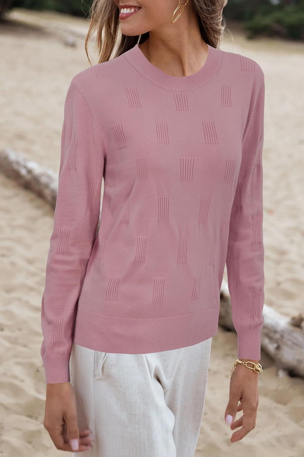 Arach&Cloz Women’s Soft Knit Sweater Fall Dressy Casual Pullover Tops(A-pink)