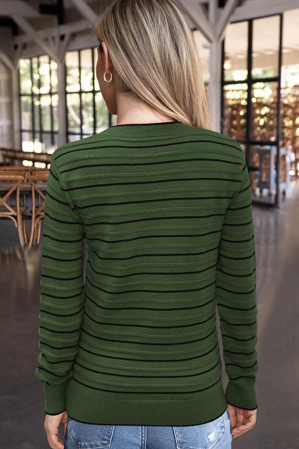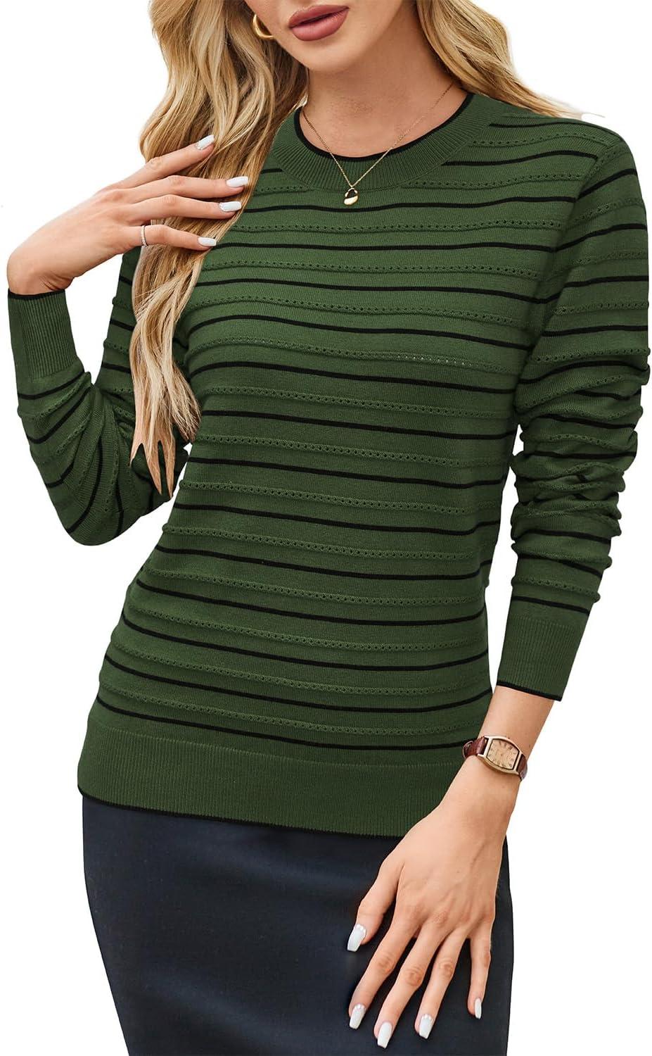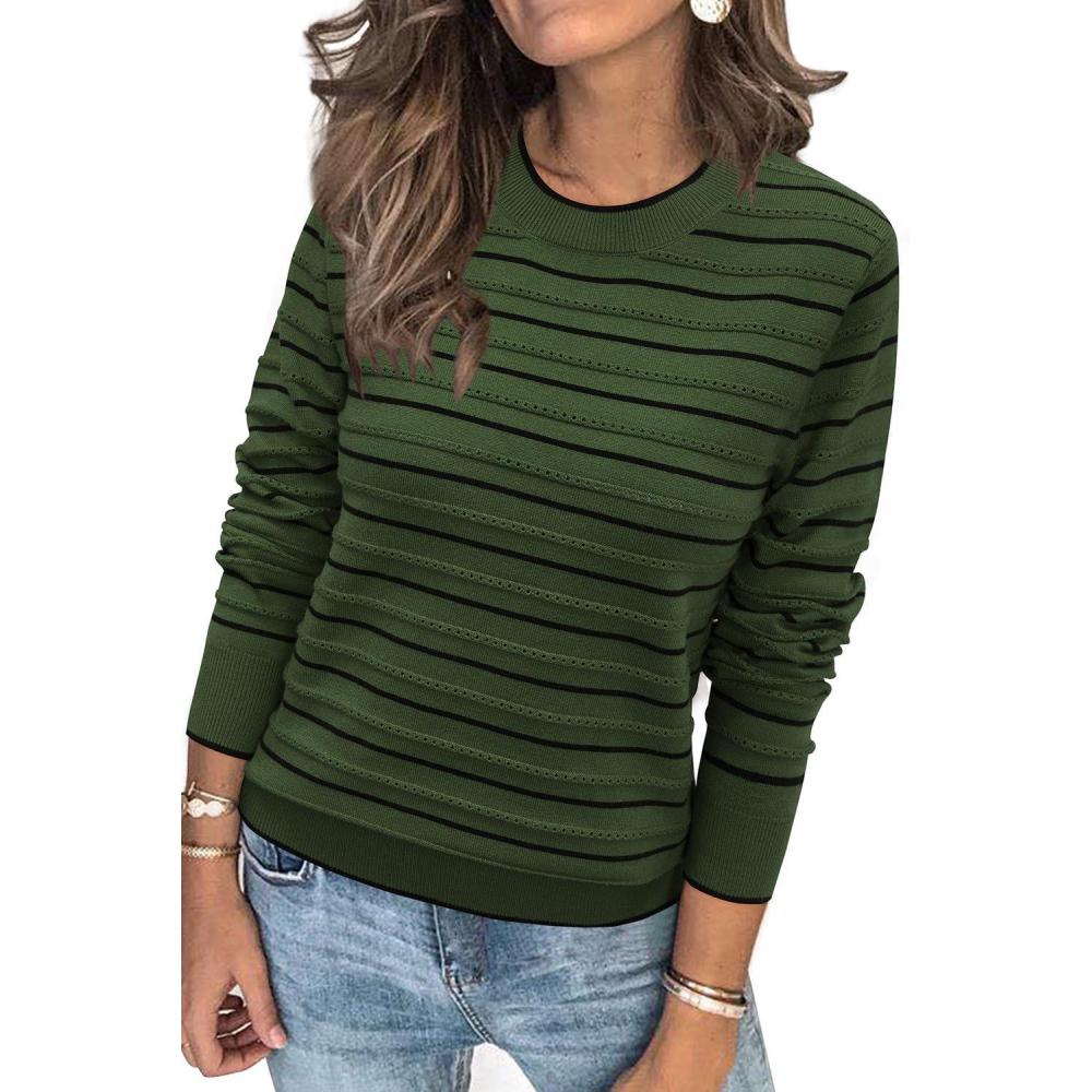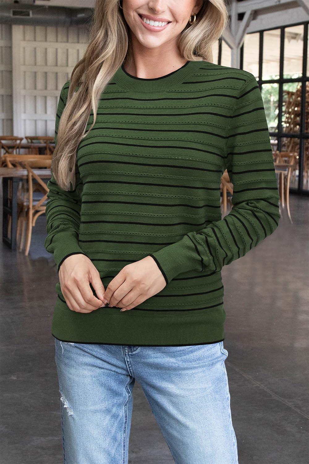 Arach&Cloz Women’s Soft Knit Sweater Fall Dressy Casual Pullover Tops(Striped Army Green Black)