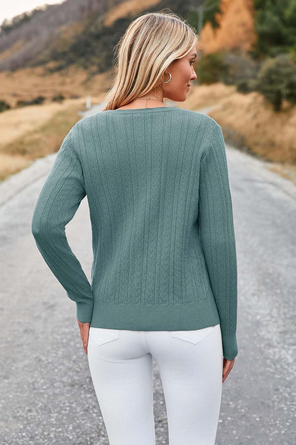 Arach&Cloz Women’s Summer Fall Scalloped Lace Cuff Crewneck Tops Textured Shirts(B-gray Green)