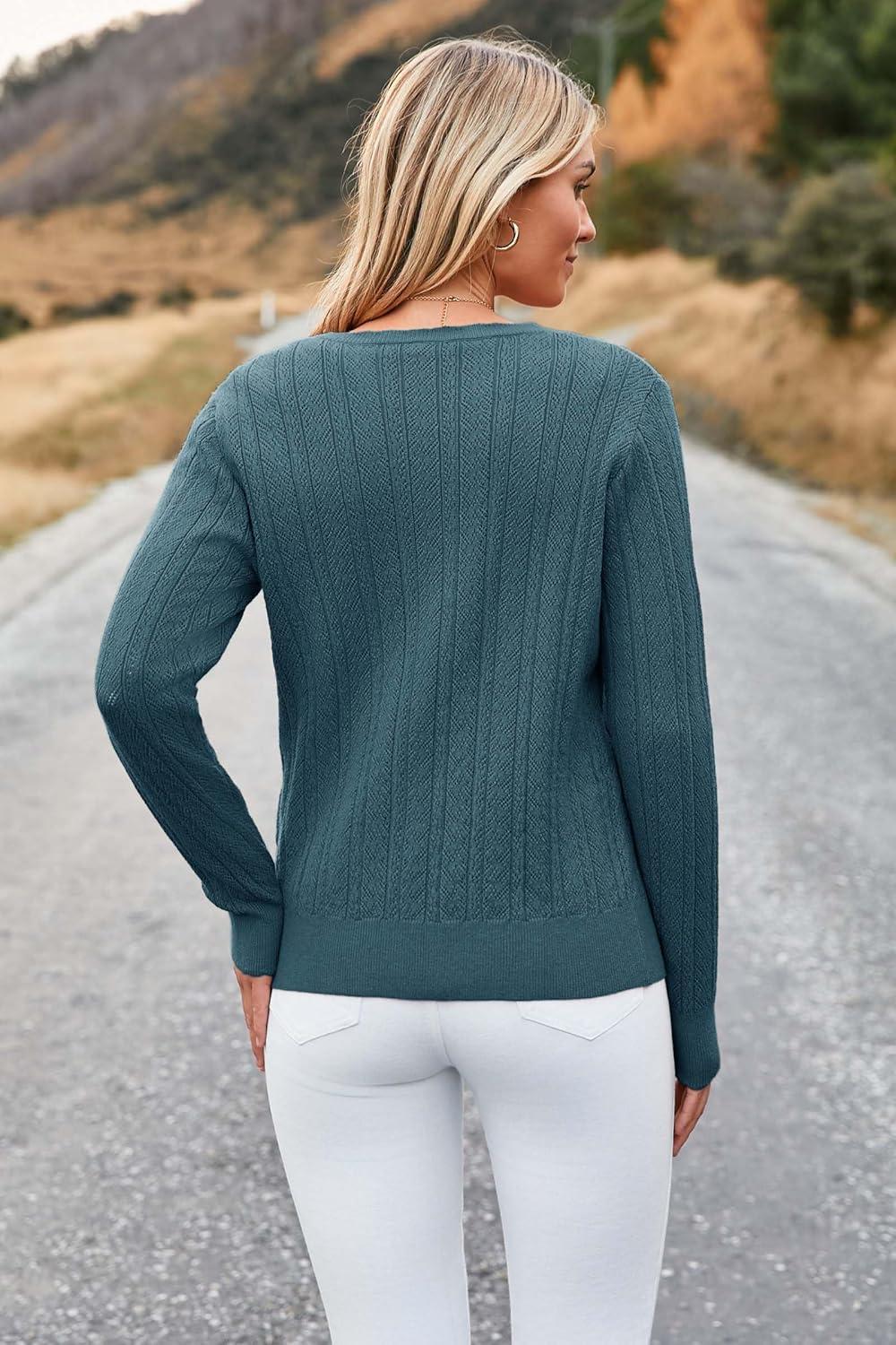 Arach&Cloz Women’s Summer Fall Scalloped Lace Cuff Crewneck Tops Textured Shirts(B-peacock Blue)