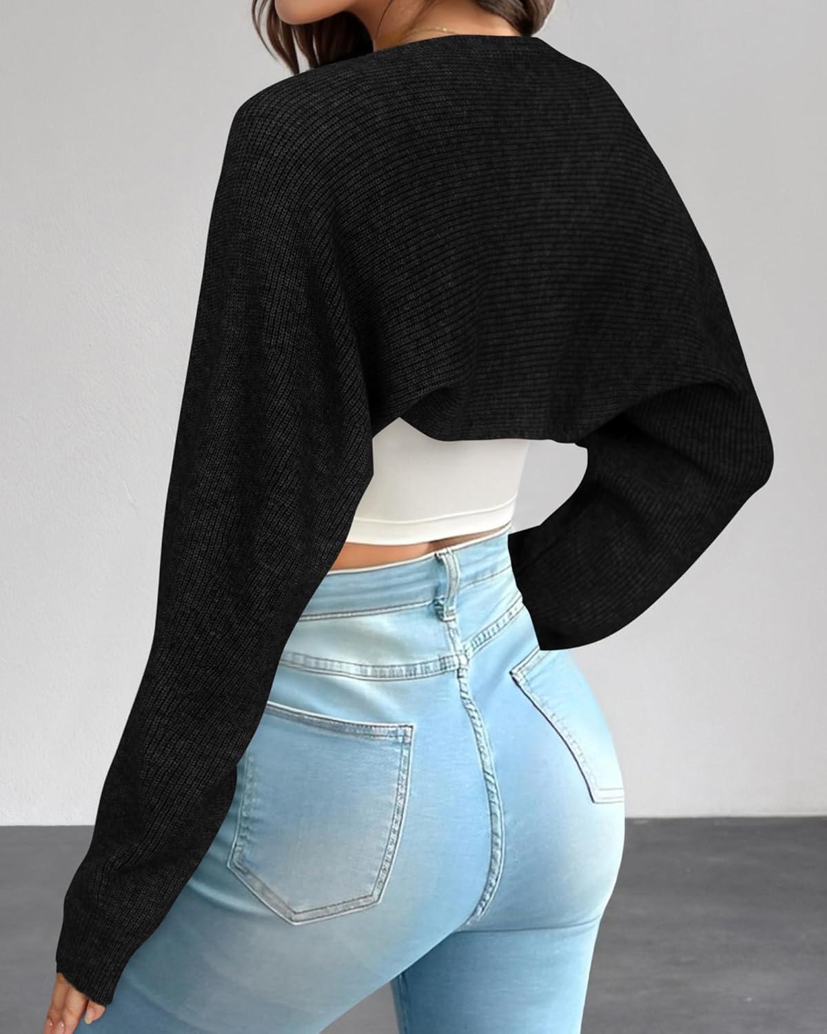 Arach&Cloz Women's Wool Blend Bolero Shrug Fall Fashion Cropped Cardigans 2025(Black)