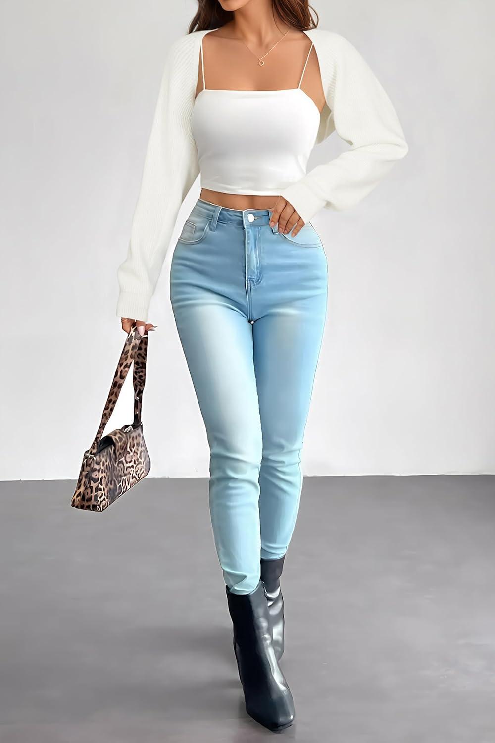 Arach&Cloz Women’s Wool Blend Bolero Shrug Fall Fashion Cropped Cardigans 2025(White)