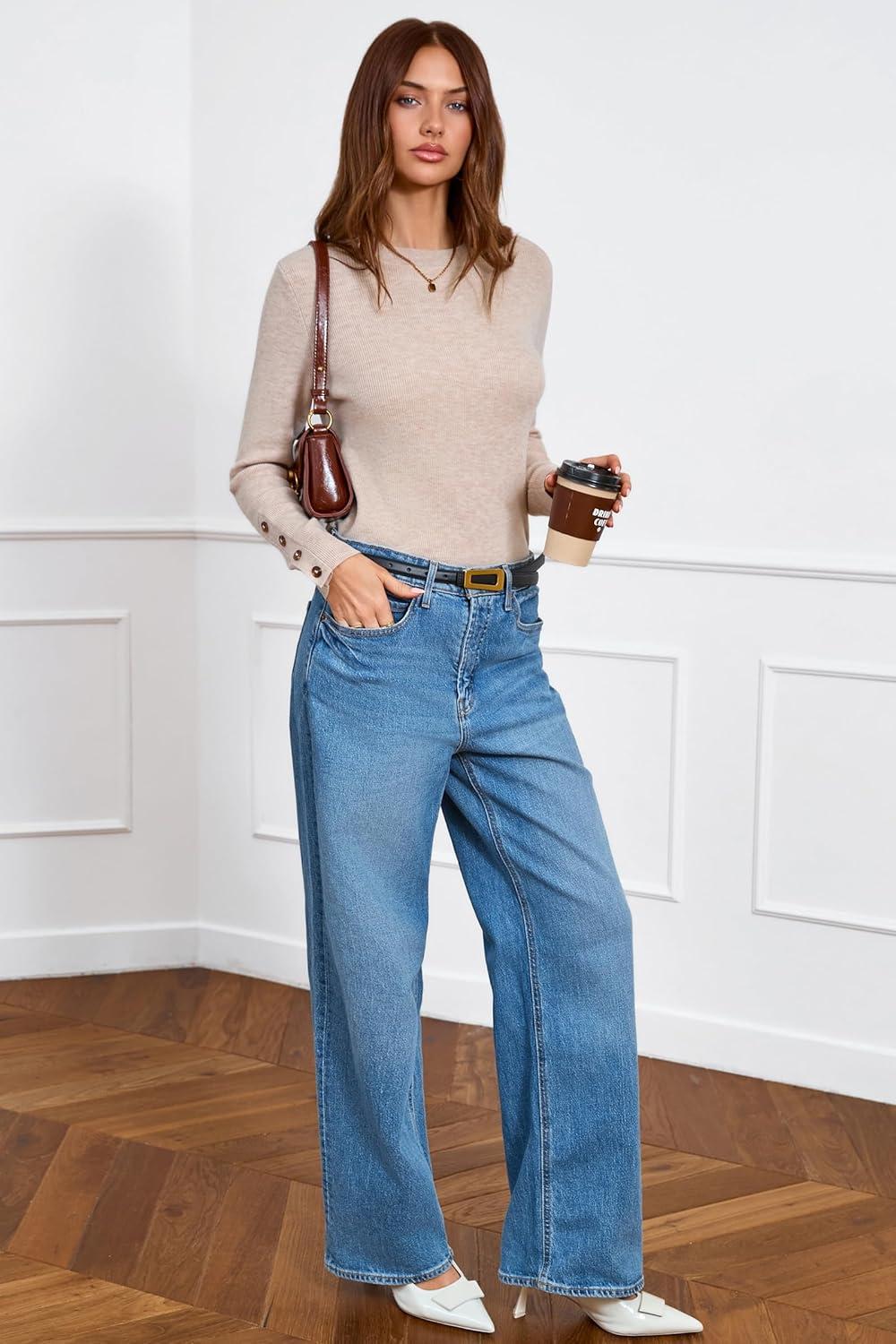 Arach&Cloz Women’s Wool Blend Button-Cuff Fall Fashion Casual Sweaters(Apricot)