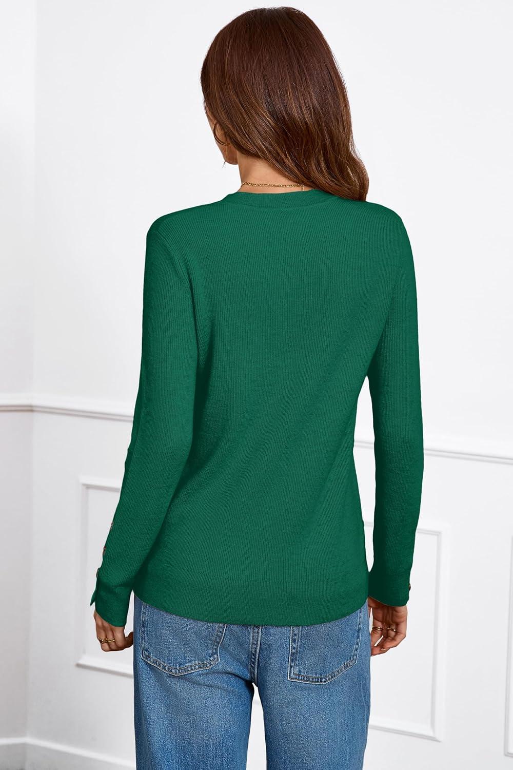 Arach&Cloz Women's Wool Blend Button-Cuff Fall Fashion Casual Sweaters(Dark Green)