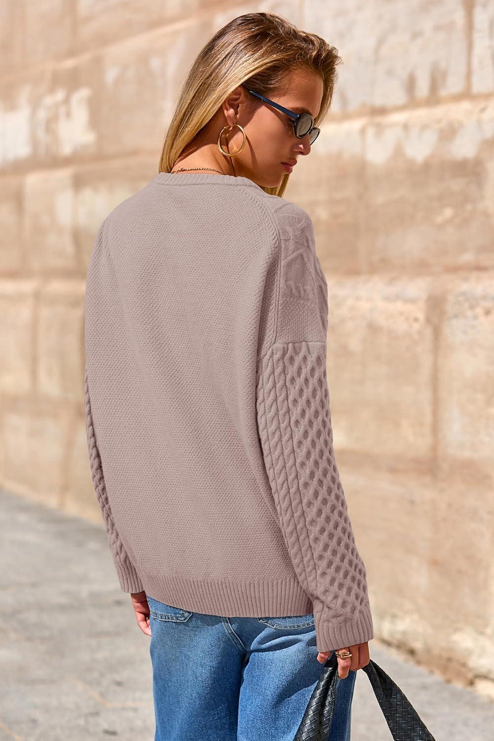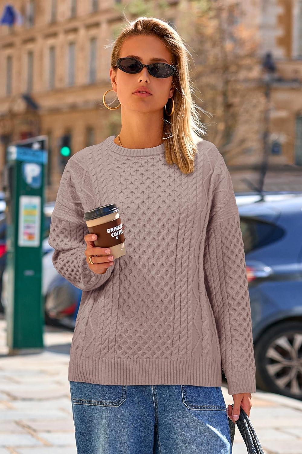 Arach&Cloz Women’s Wool Blend Cable Knit Fall Winter Chunky Oversized Sweaters 2025(Light Nutmeg)
