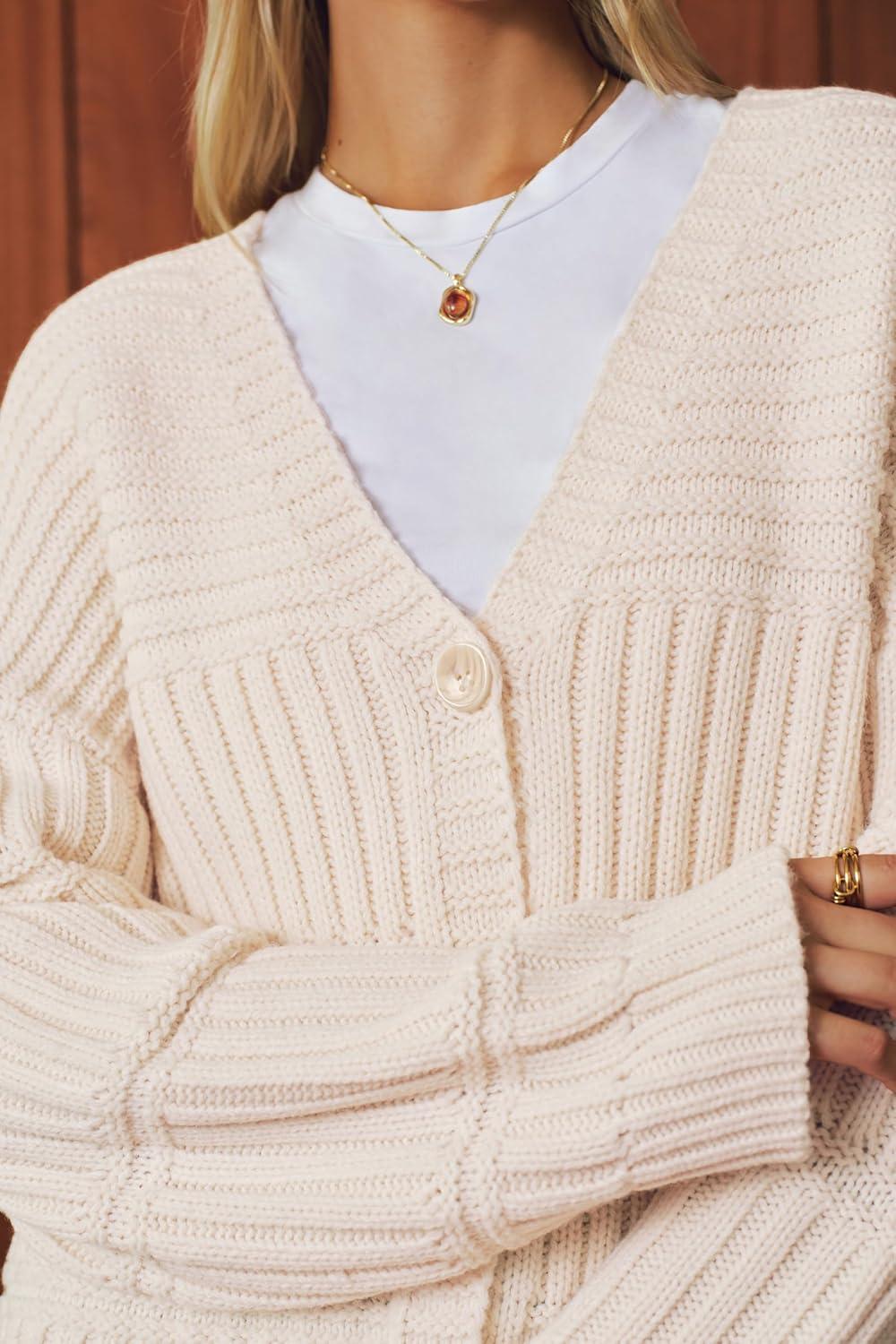 Arach&Cloz Women’s Wool Blend Chunky Knit Winter Cardigan Sweaters 2025(Apricot)