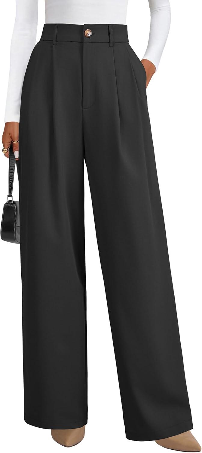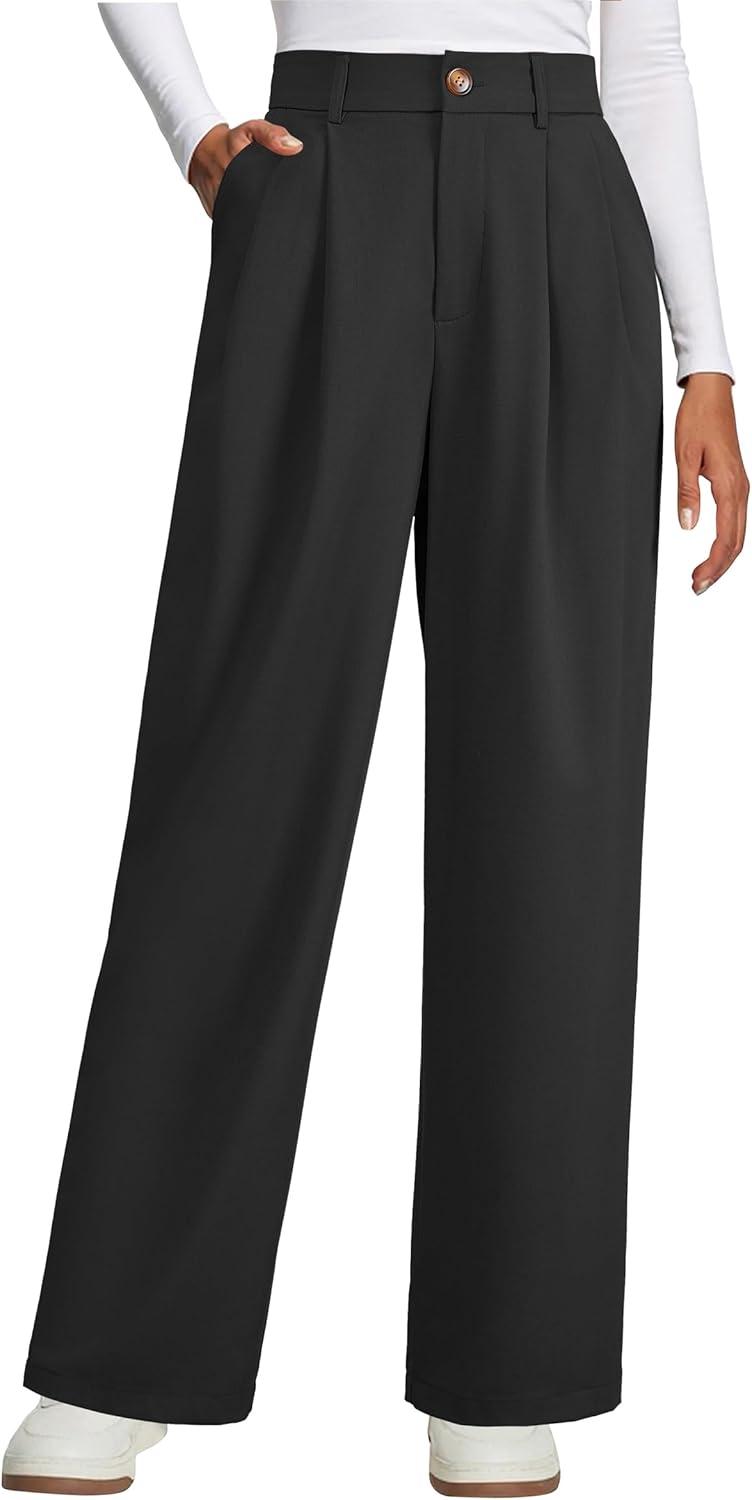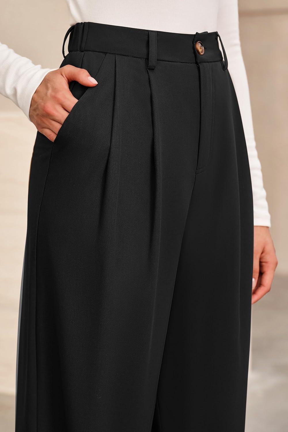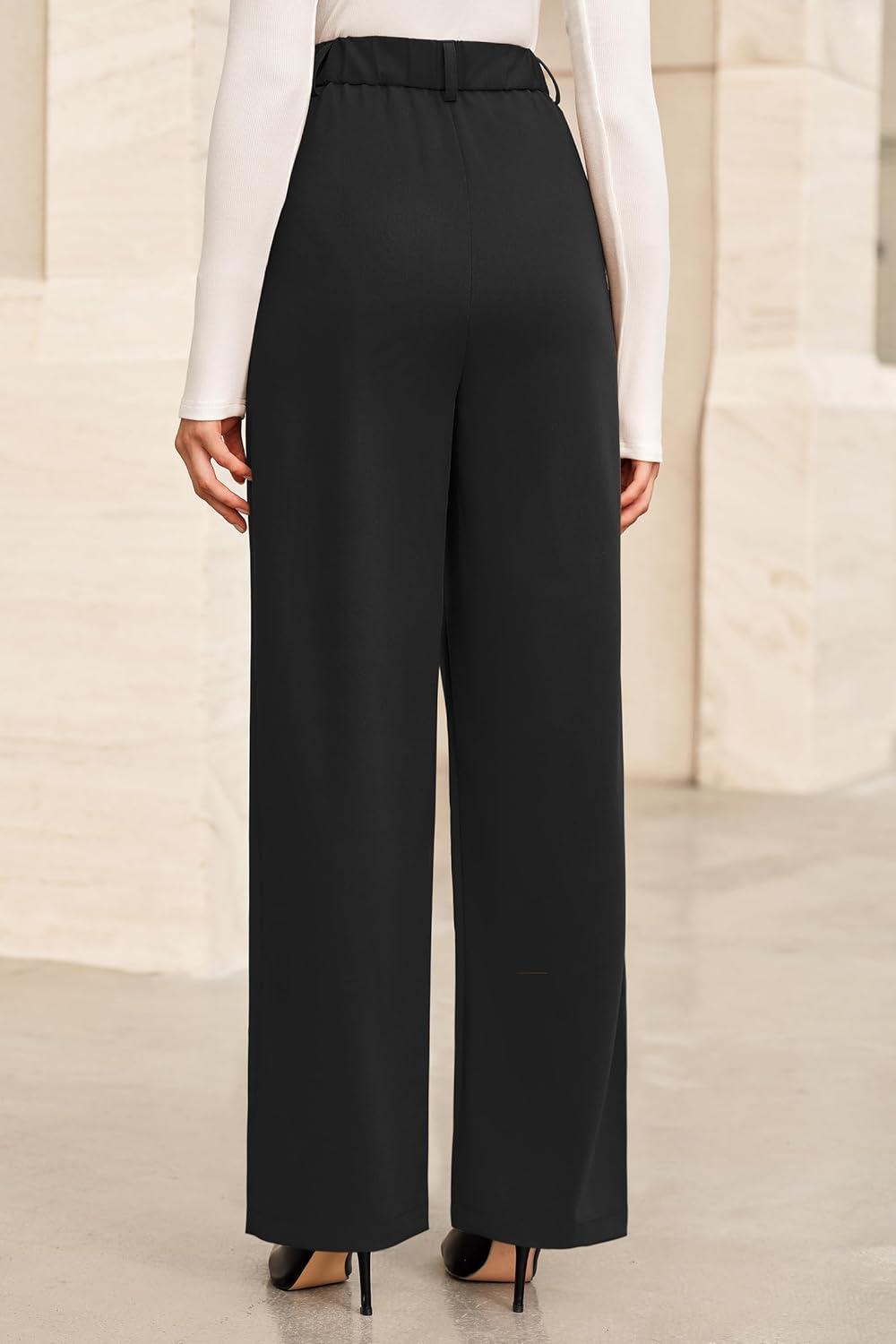 Arach&Cloz Women’s Wool Blend Elastic Waist Straight Leg Business Casual Pants 2025(Black)
