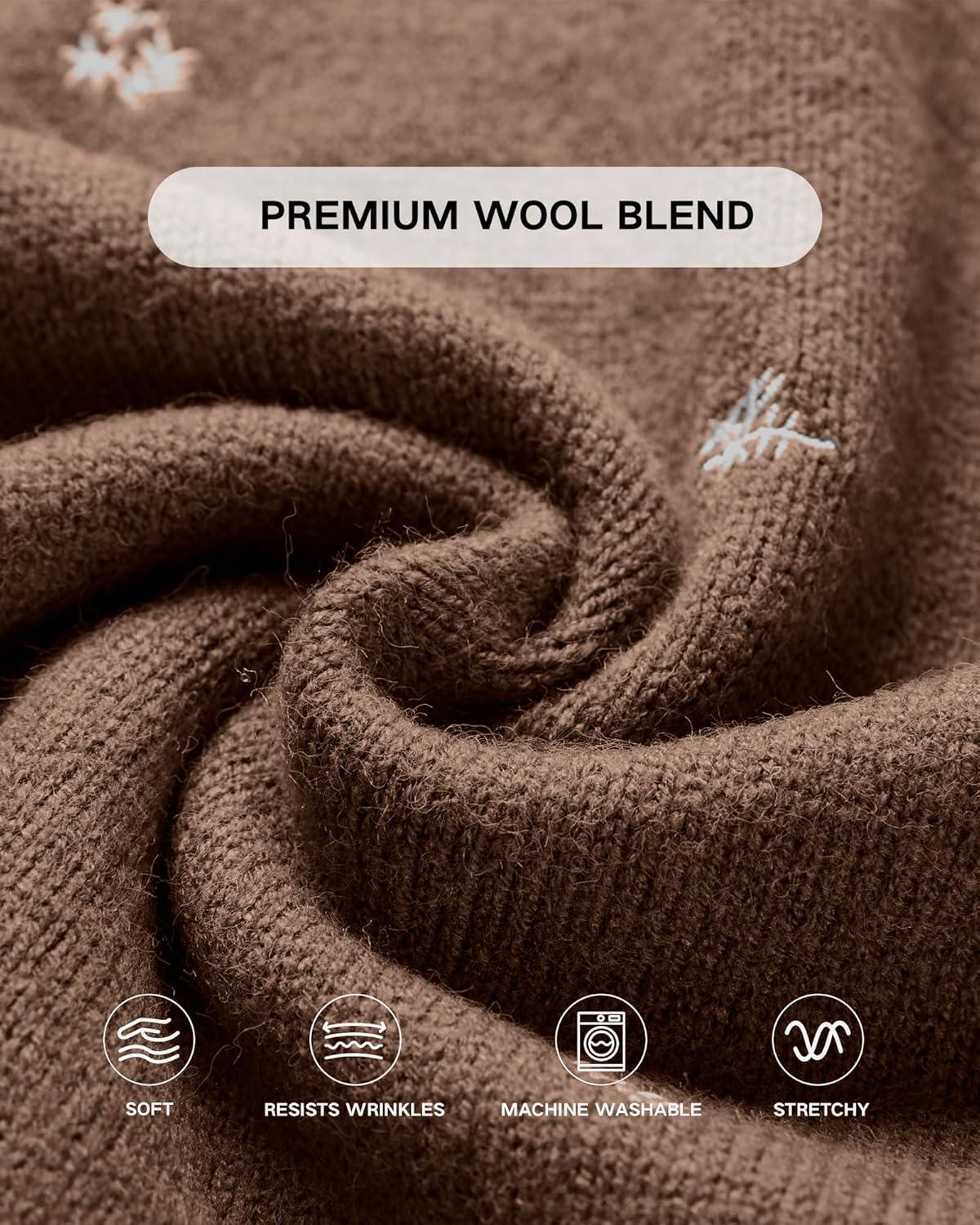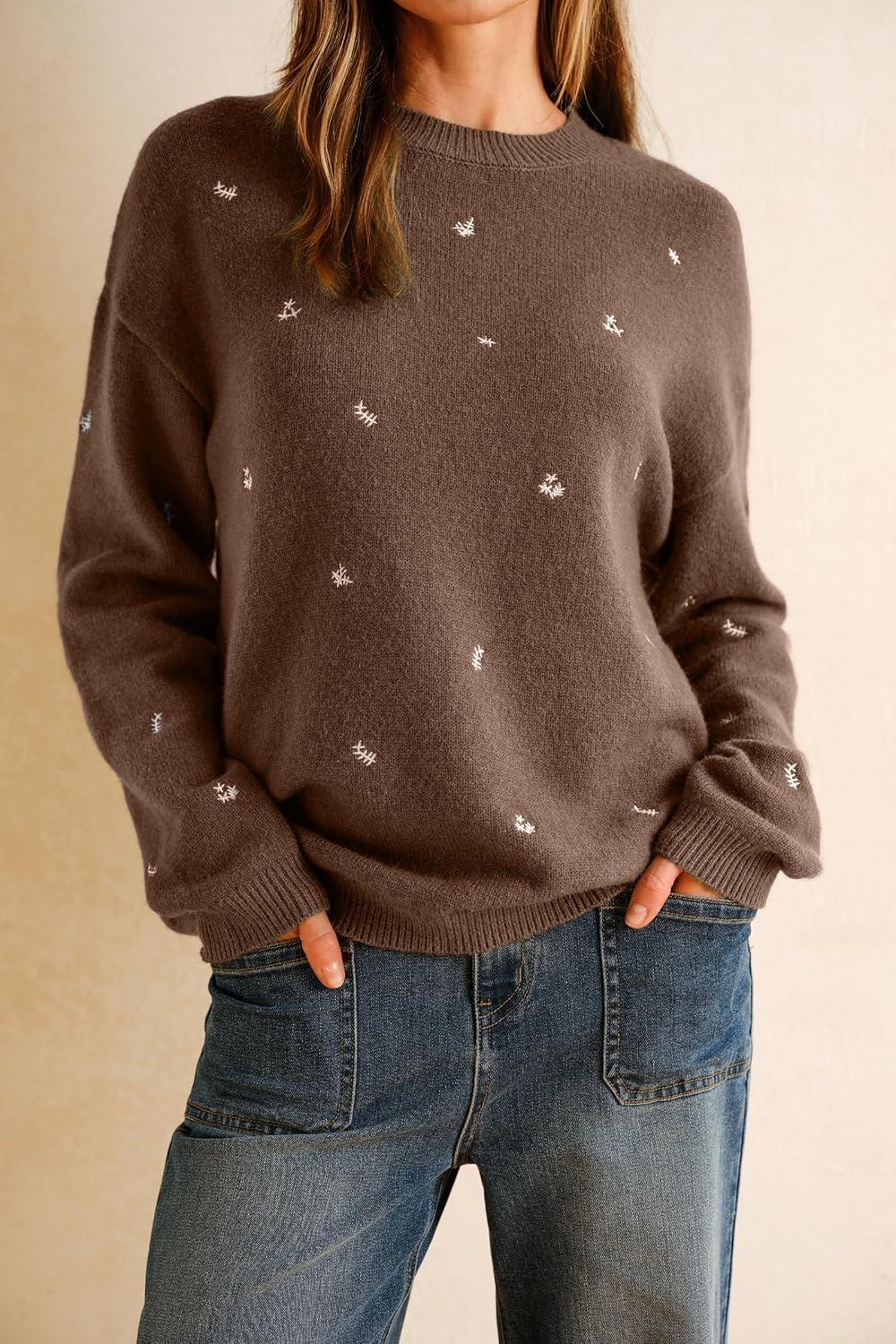 Arach&Cloz Womens Wool Blend Embroidery Floral Oversized Fit Sweater Trendy 2025(Chocolate Brown)