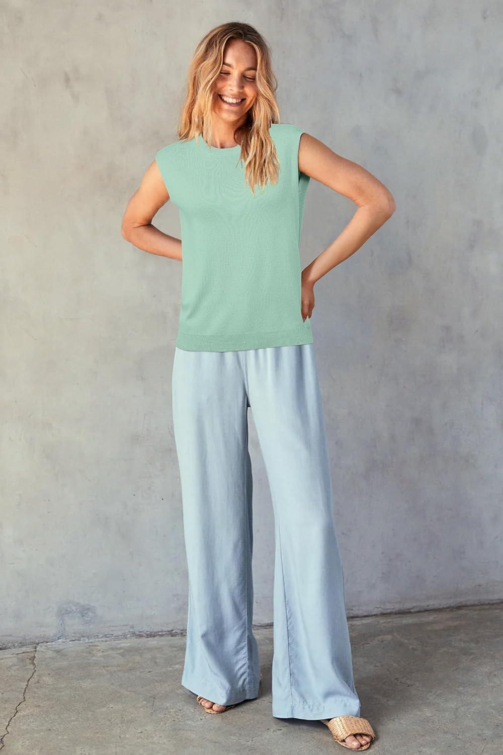 Arach&Cloz Women’s Wool Blend Mock Neck Sweaters Vest Business Casual Trendy Tops Fall Outfits 2025(Celadon Green-5046)
