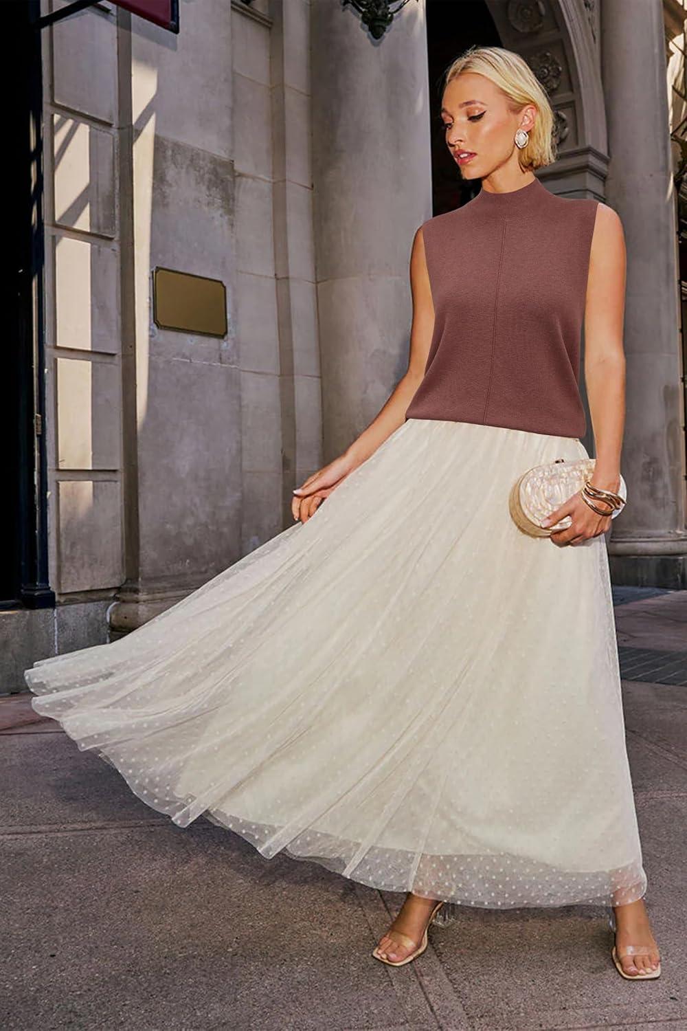 Arach&Cloz Women’s Wool Blend Mock Neck Sweaters Vest Business Casual Trendy Tops Fall Outfits 2025(Khaki)