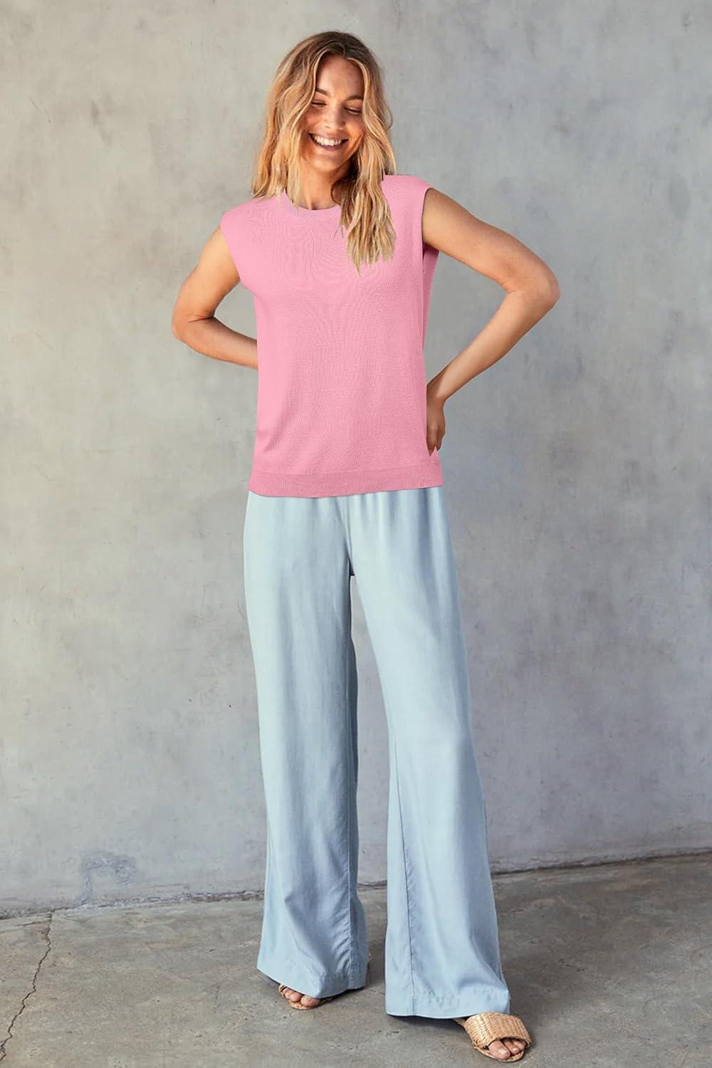 Arach&Cloz Women’s Wool Blend Mock Neck Sweaters Vest Business Casual Trendy Tops Fall Outfits 2025(Pink-5046)