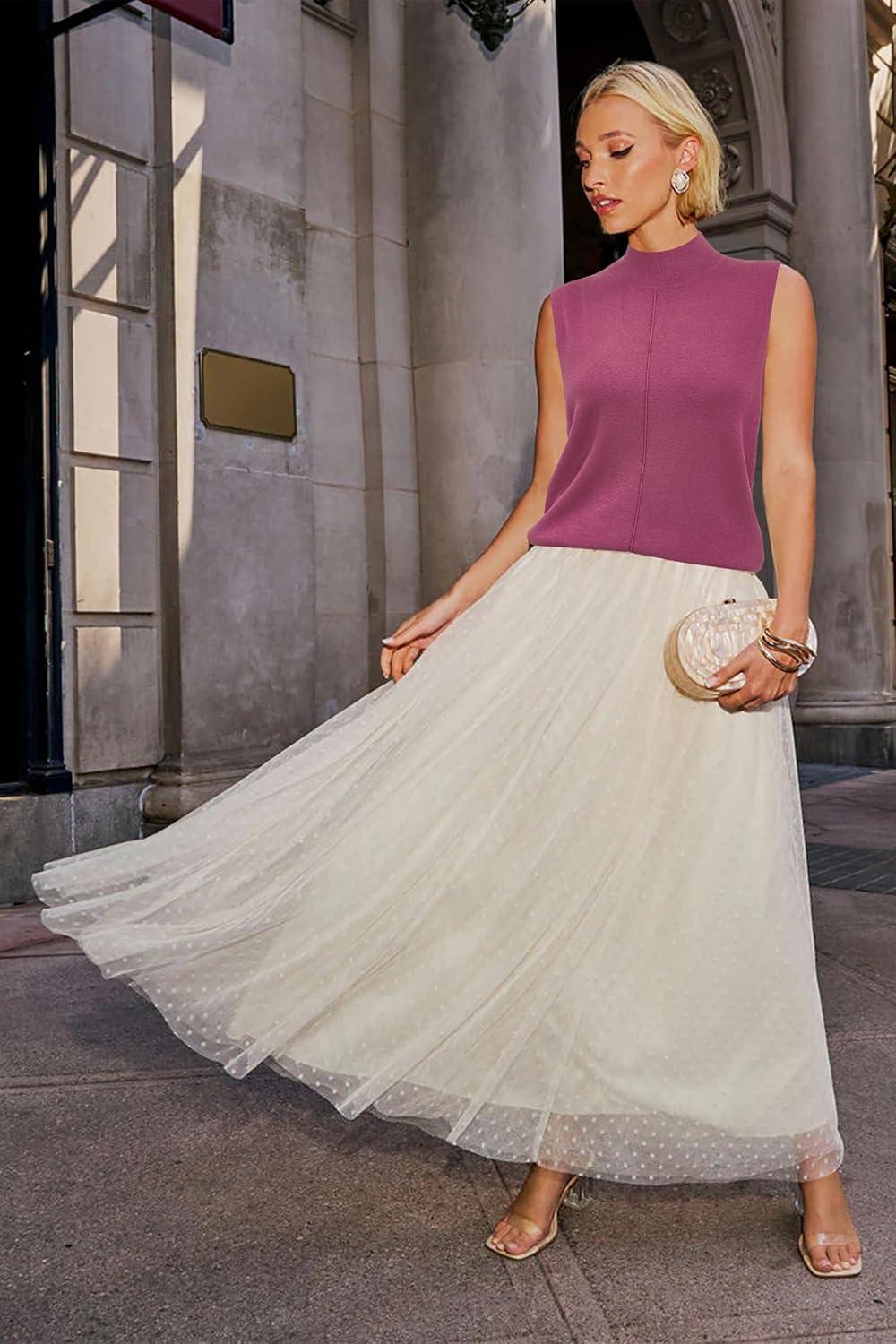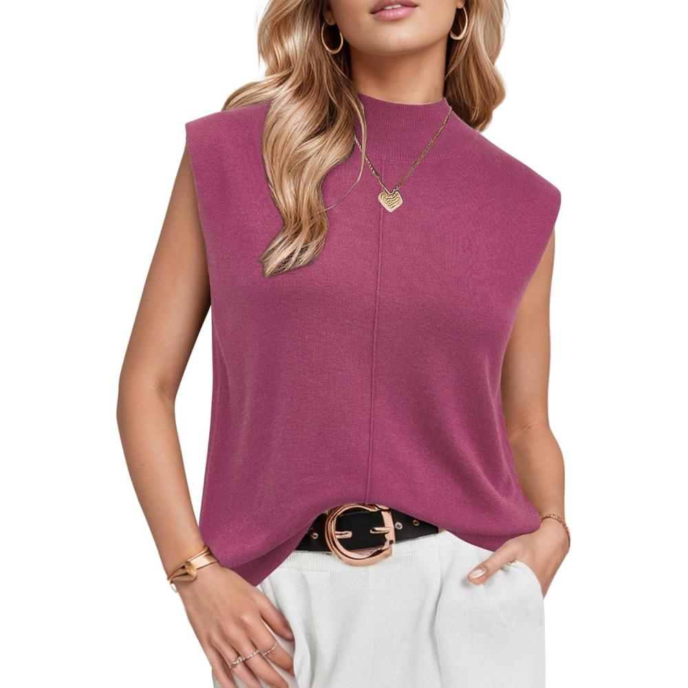 Arach&Cloz Women’s Wool Blend Mock Neck Sweaters Vest Business Casual Trendy Tops Fall Outfits 2025(Rose)