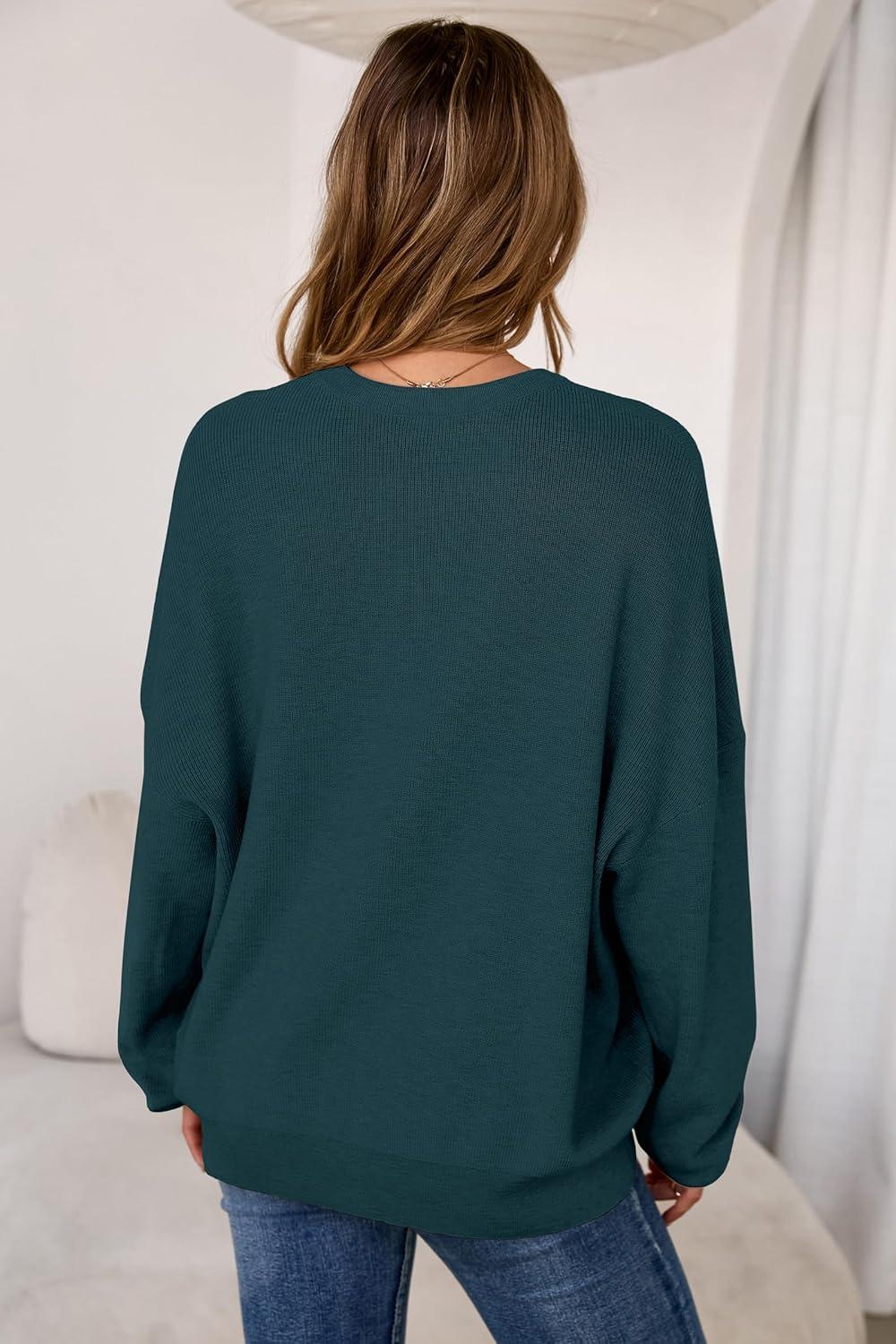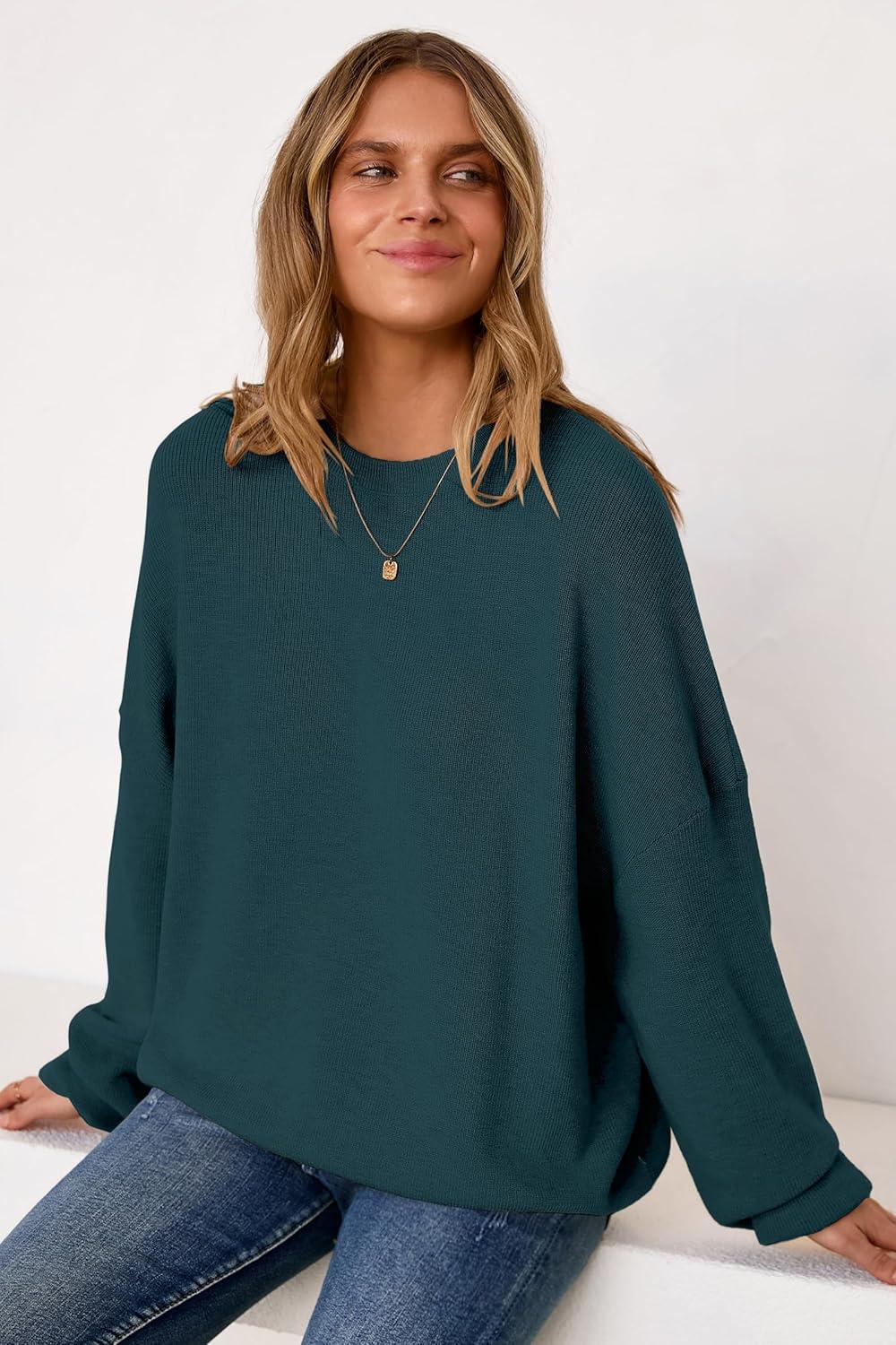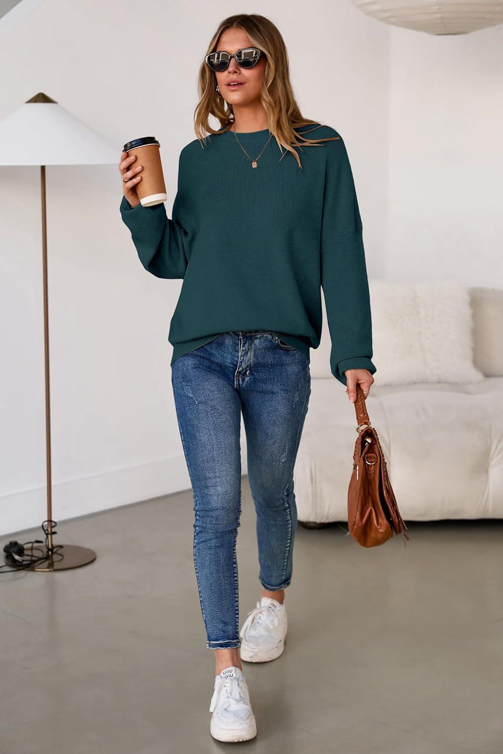 Arach&Cloz Women’s Wool Blend Oversized Sweaters Crewneck Casual Fall Outfits Fashion Tops(Dark Green)