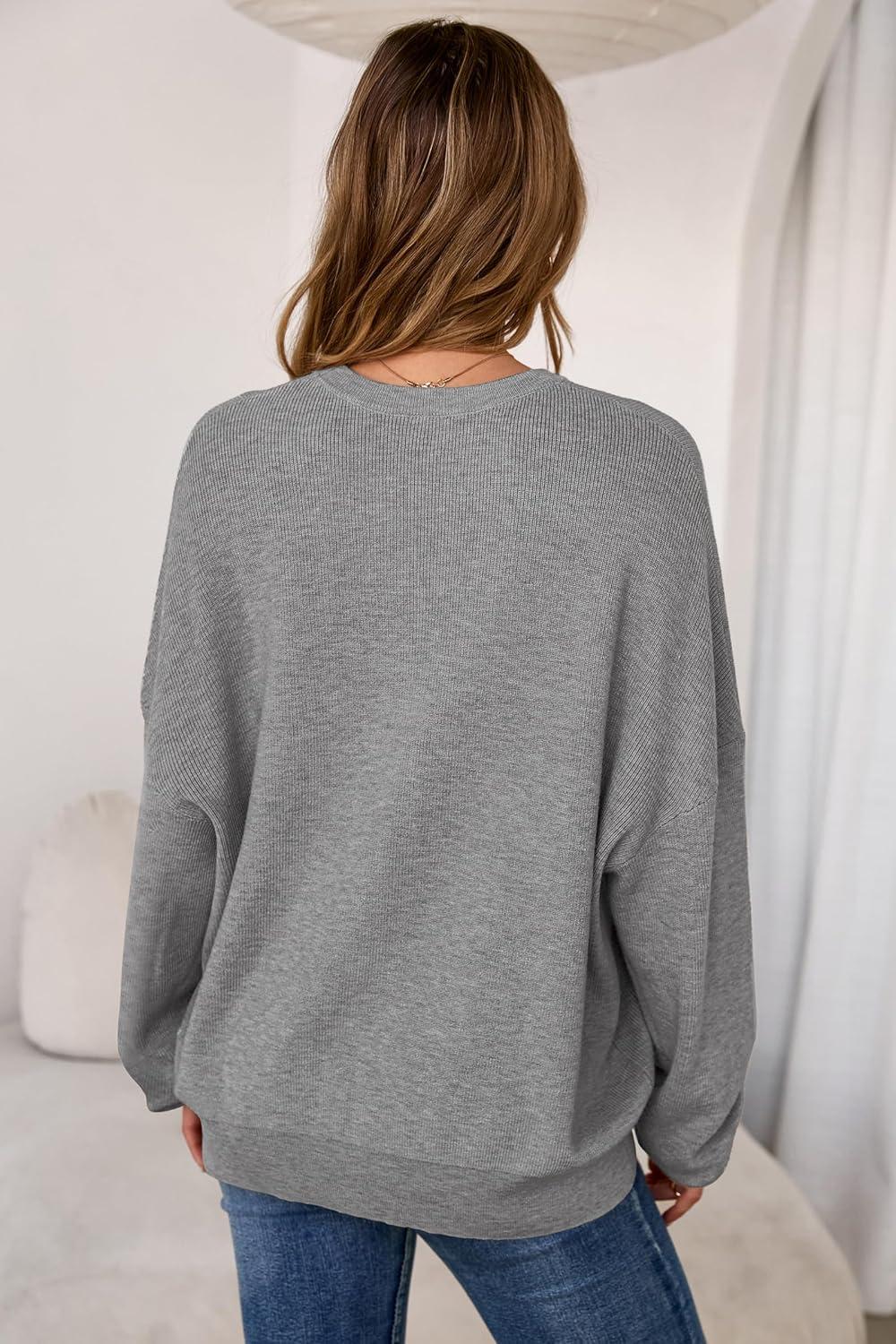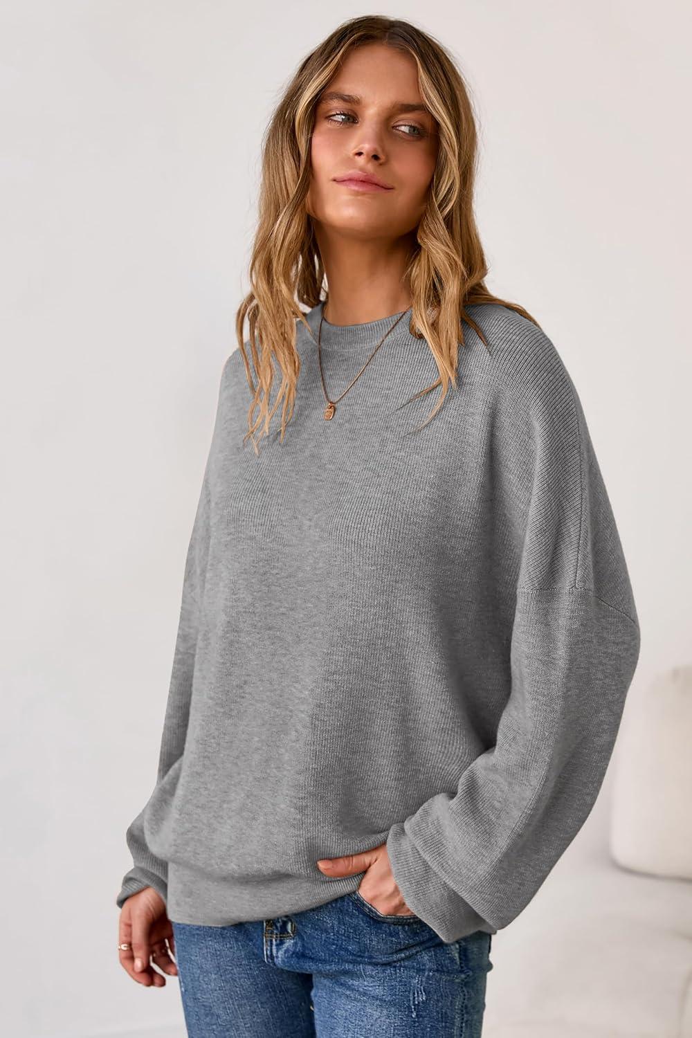 Arach&Cloz Women's Wool Blend Oversized Sweaters Crewneck Casual Fall Outfits Fashion Tops(Gray)