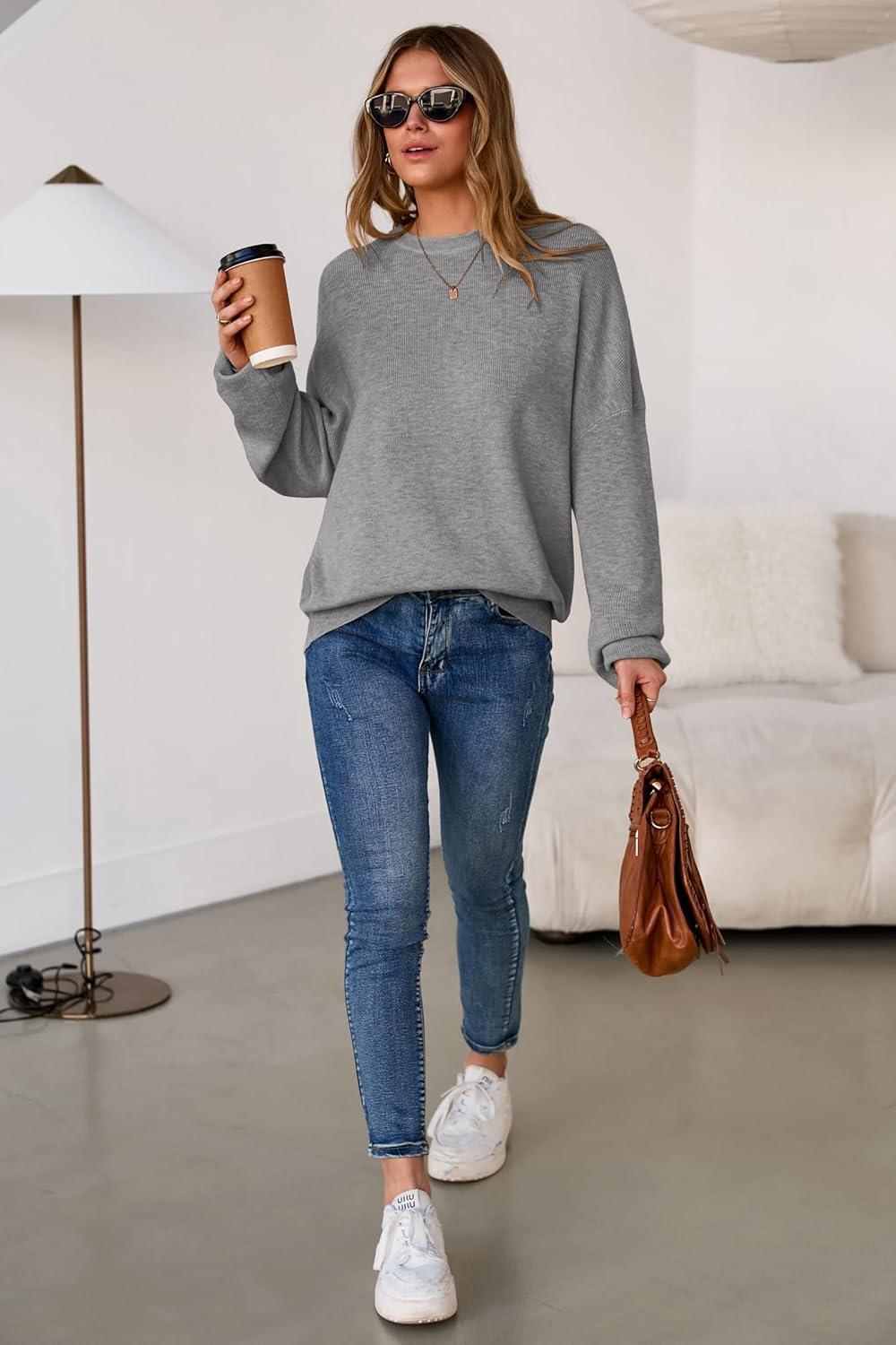 Arach&Cloz Women’s Wool Blend Oversized Sweaters Crewneck Casual Fall Outfits Fashion Tops(Gray)