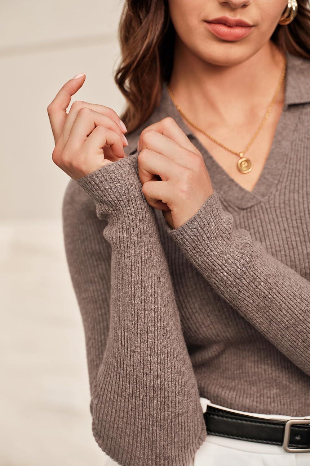 Arach&Cloz Women’s Wool Blend Polo Sweater Shirt Business Casual Slim Fitted Fall Tops 2025(Gray)