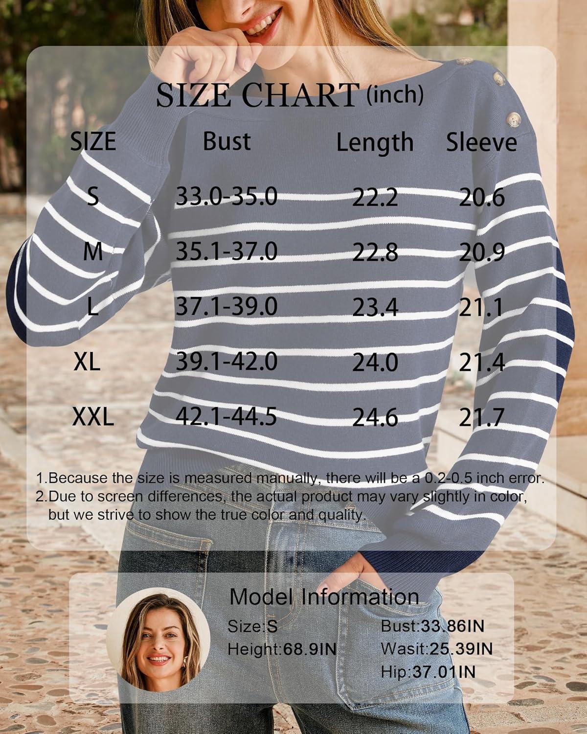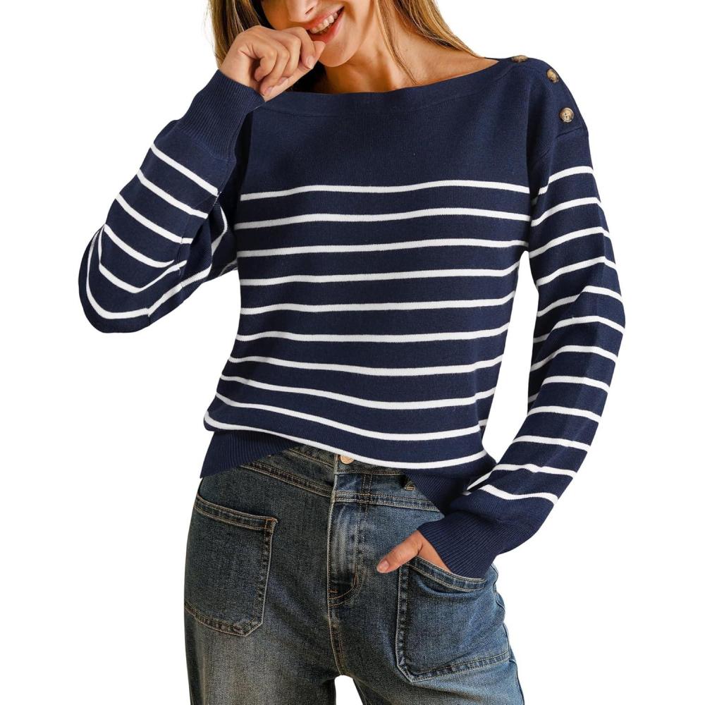 Arach&Cloz Women’s Wool Blend Striped Boat Neck Fall Dressy Casual Sweater Tops 2025(Navy Blue and White)