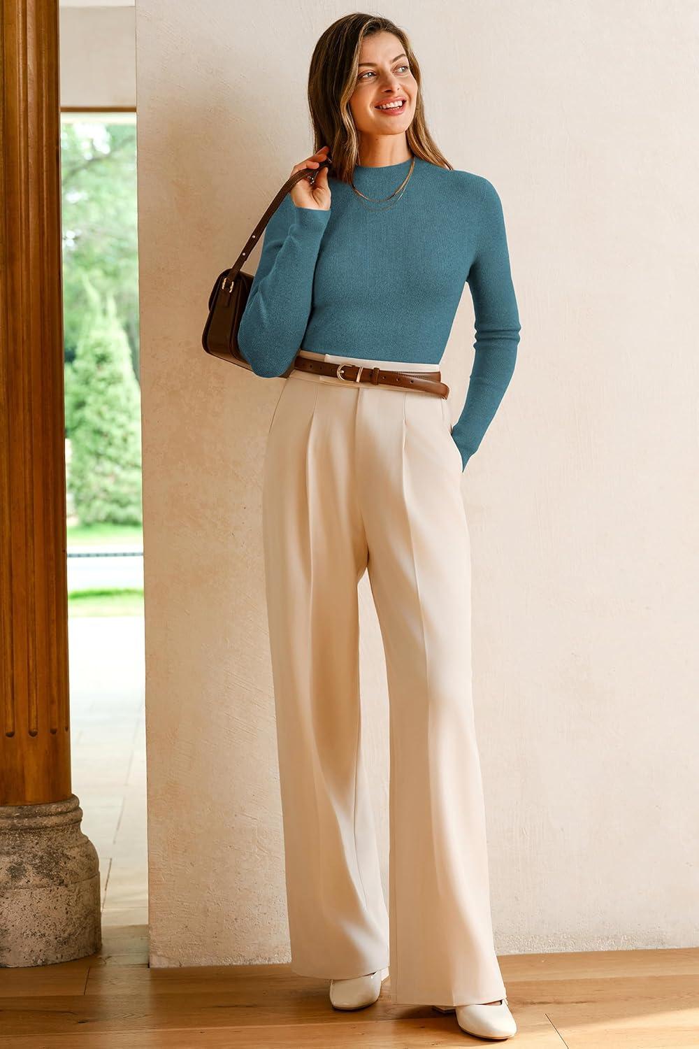 Arach&Cloz Women's Wool Blend Summer Fall Seamless Rip Resistant Tops Opaque Shirts(A-blue)