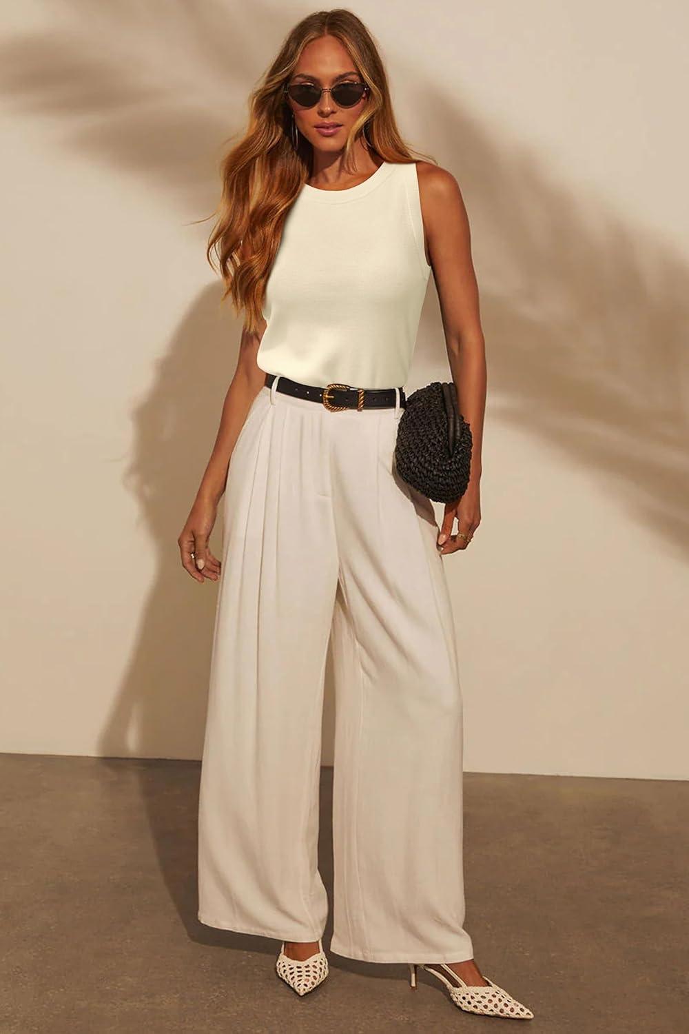 Arach&Cloz Women’s Wool Blend Sweaters Non See Through All-Season Business Casual Tank 2025(Beige)