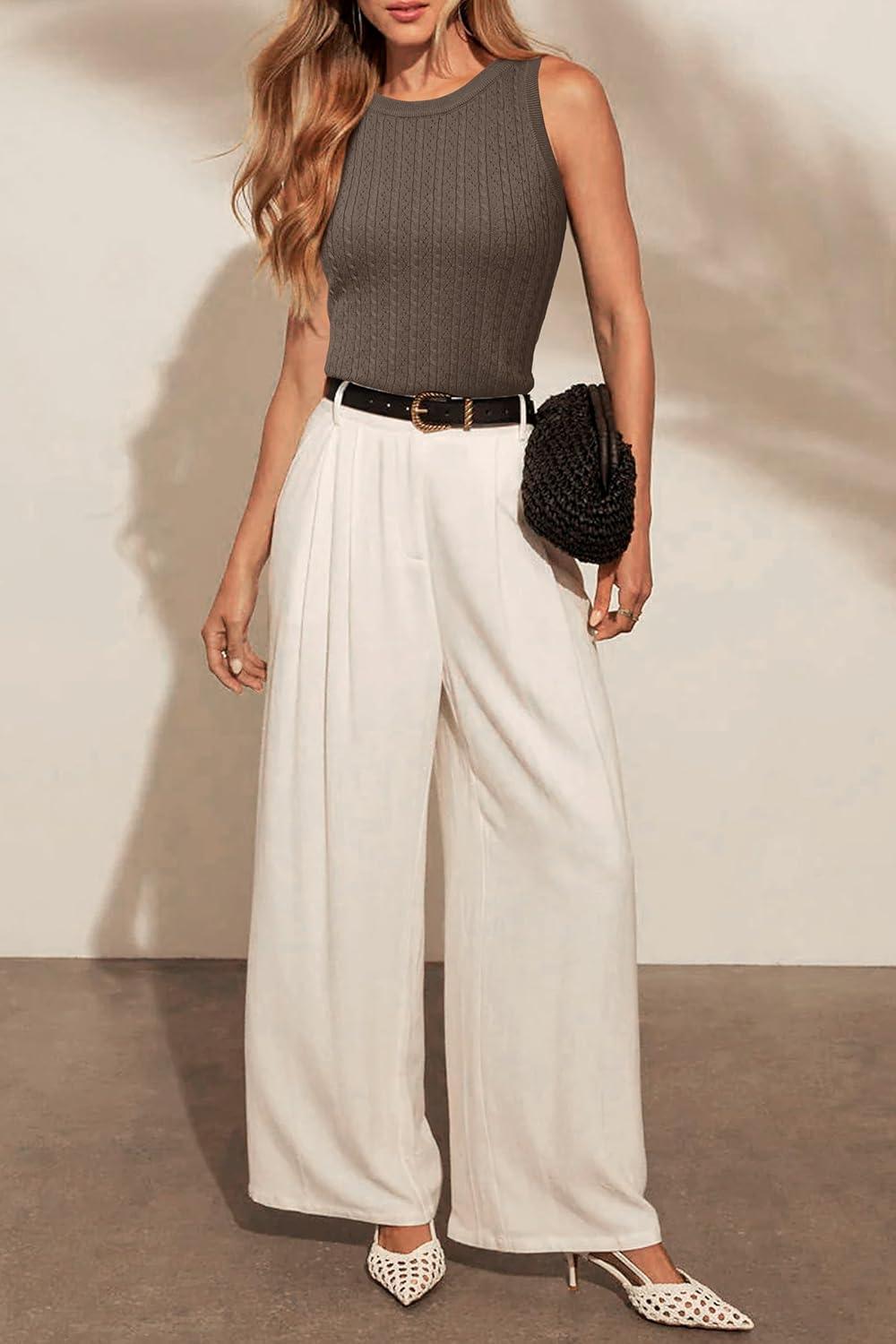 Arach&Cloz Women’s Wool Blend Sweaters Non See Through All-Season Business Casual Tank 2025(C-off-white)