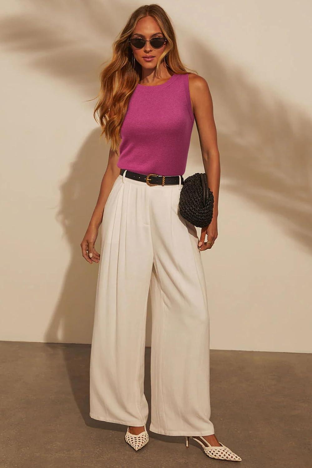 Arach&Cloz Women’s Wool Blend Sweaters Non See Through All-Season Business Casual Tank 2025(Rose Red)