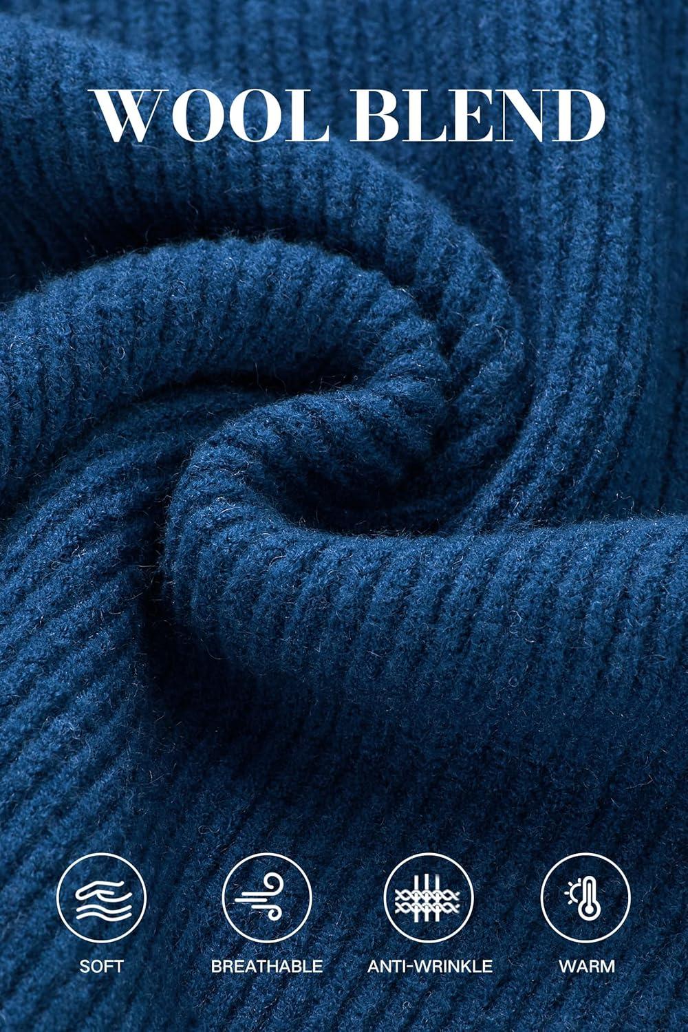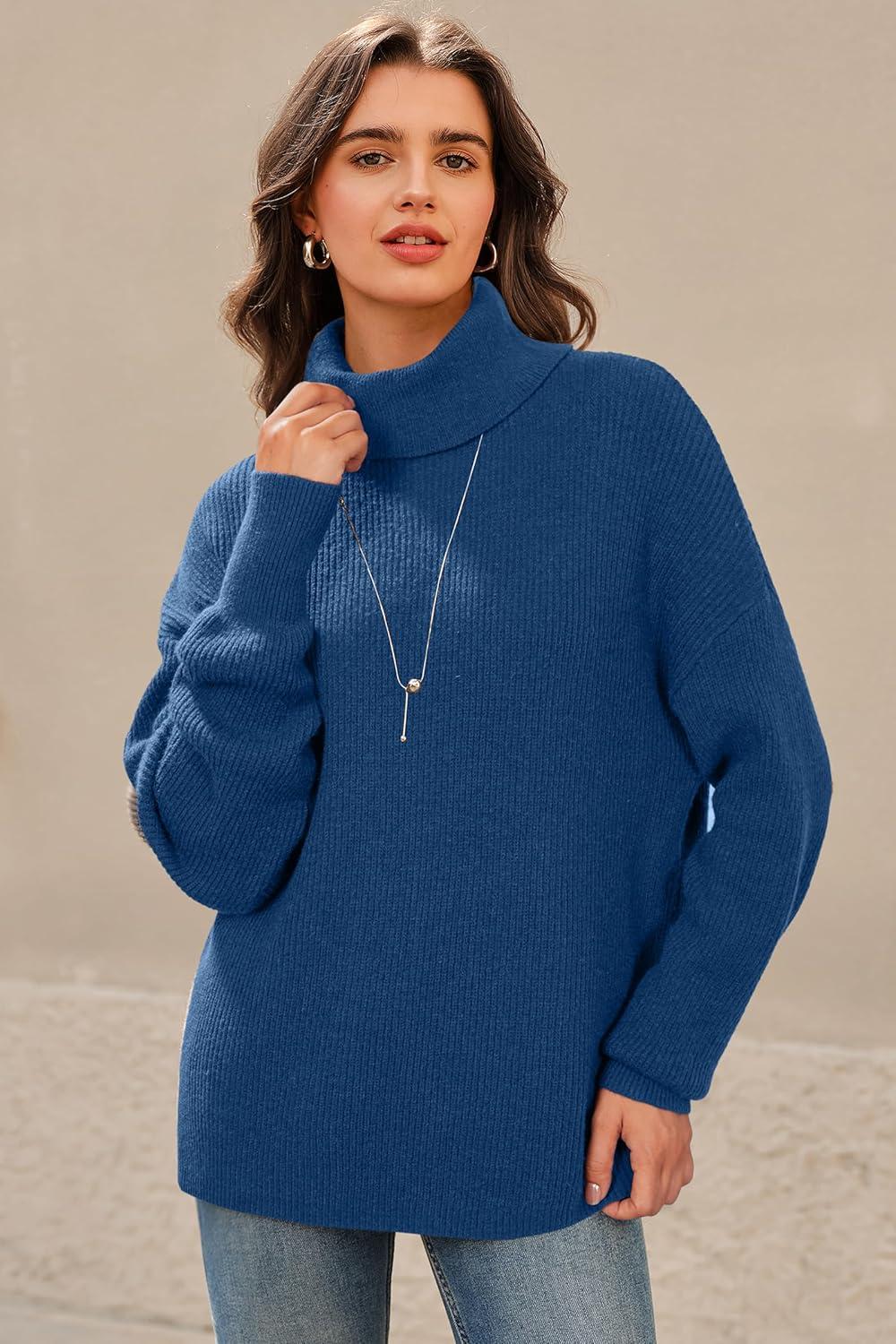 Arach&Cloz Women’s Wool Blend Turtleneck Fall Winter Casual Ribbed Oversized Sweater Tops 2025(Navy Blue)