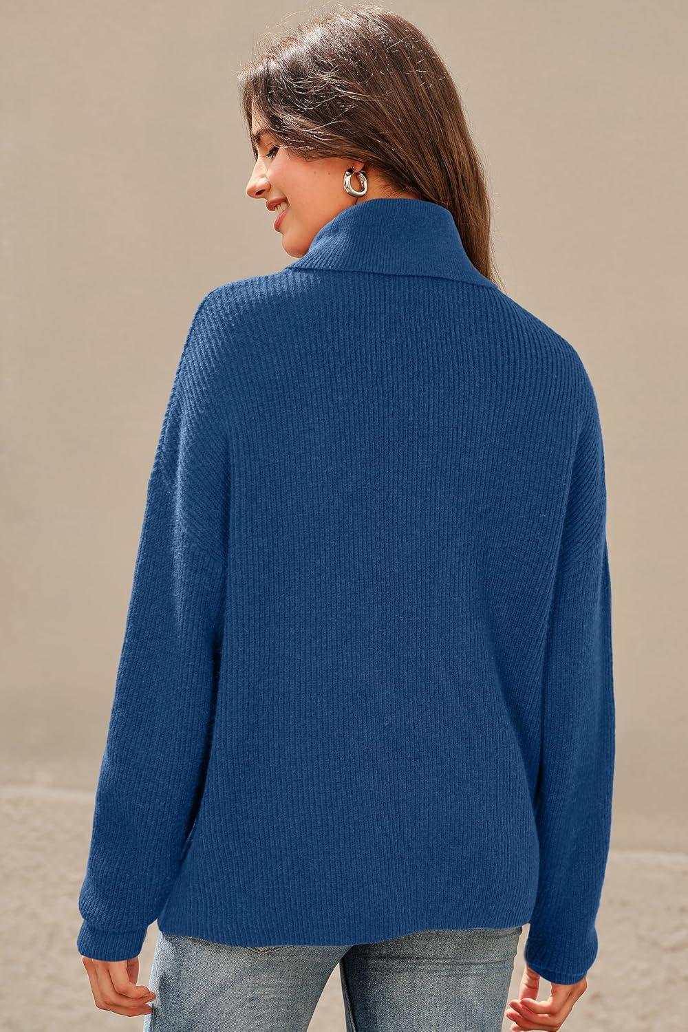 Arach&Cloz Women's Wool Blend Turtleneck Fall Winter Casual Ribbed Oversized Sweater Tops 2025(Navy Blue)