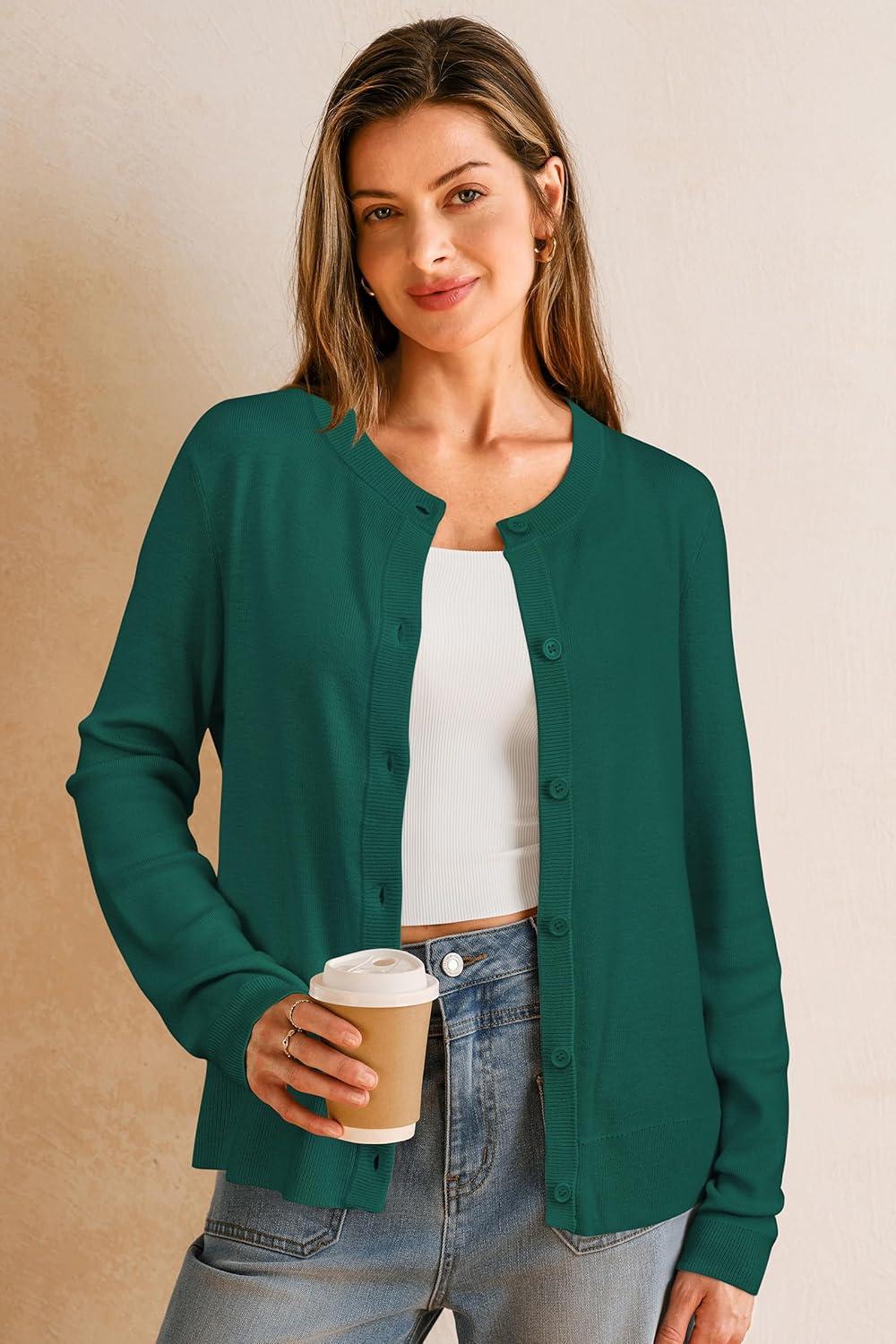 Arach&Cloz Women's Wool Blended 2025 Fall Cardigan Sweaters Lightweight Long Sleeve Business Casual Outfits Top(Dark Green)